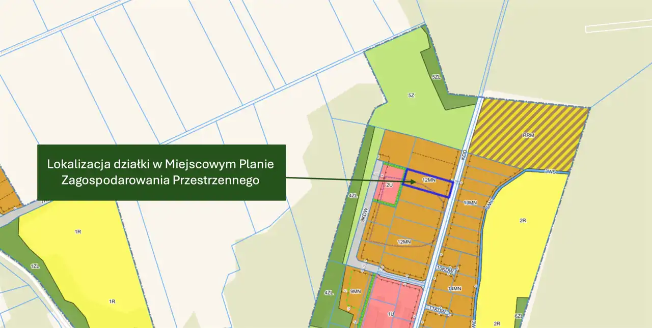 Działka jest objęta Miejscowym Planem Zagospodarowania Przestrzennego. Funkcja zagospodarowania terenu MN - teren zabudowy mieszkaniowej jednorodzinnej.