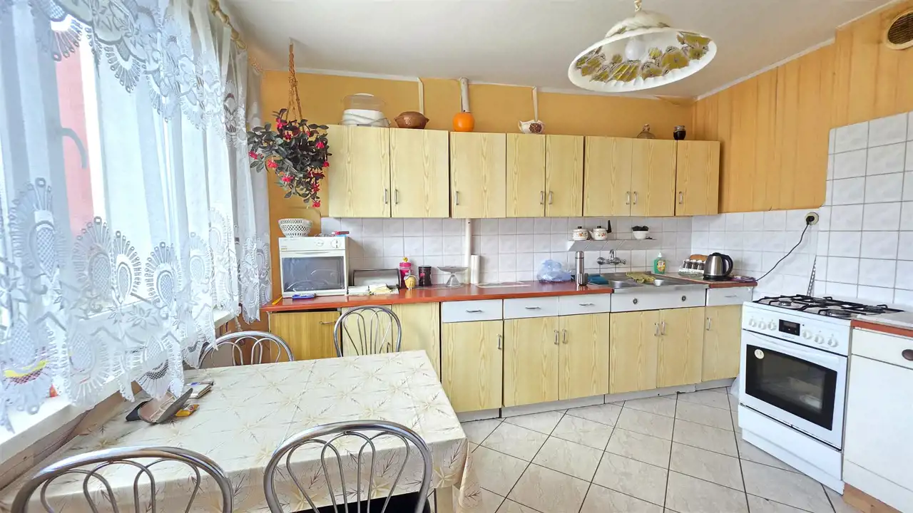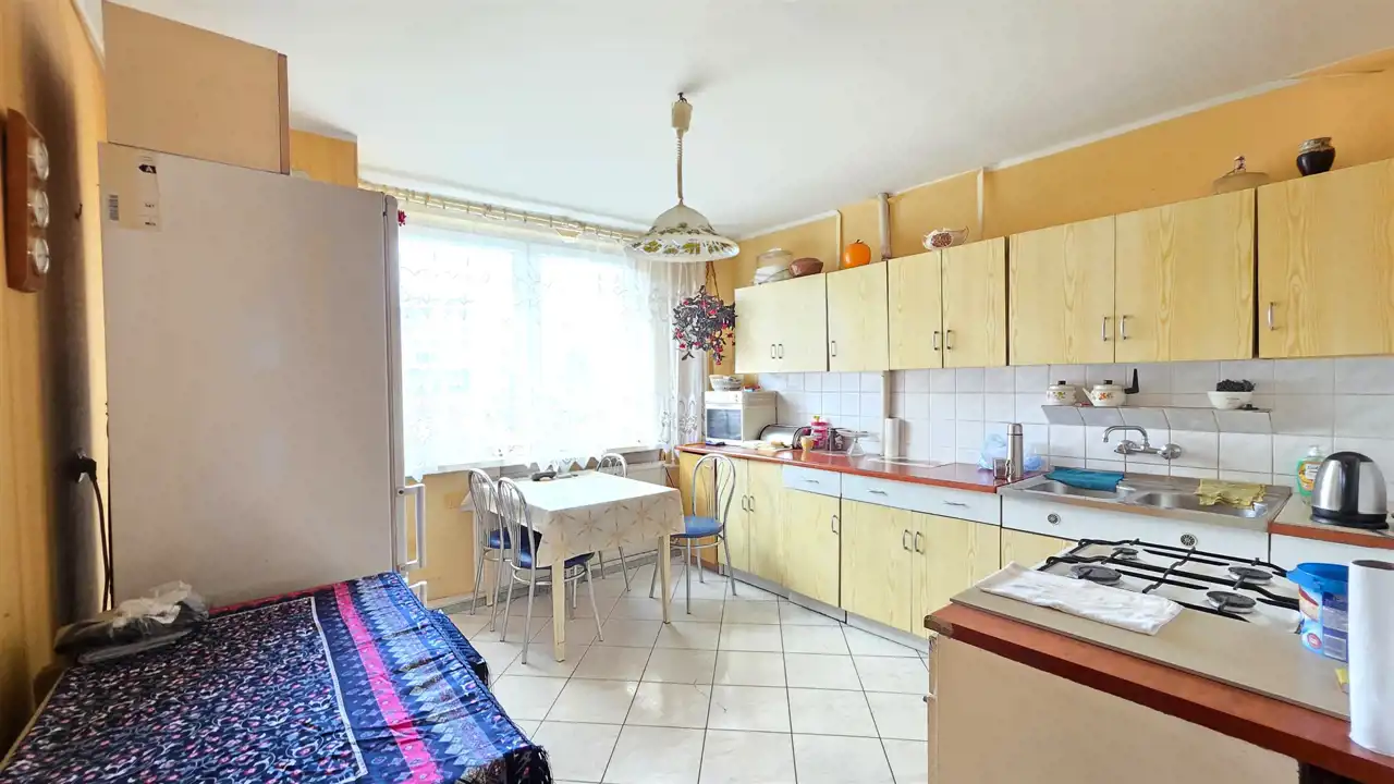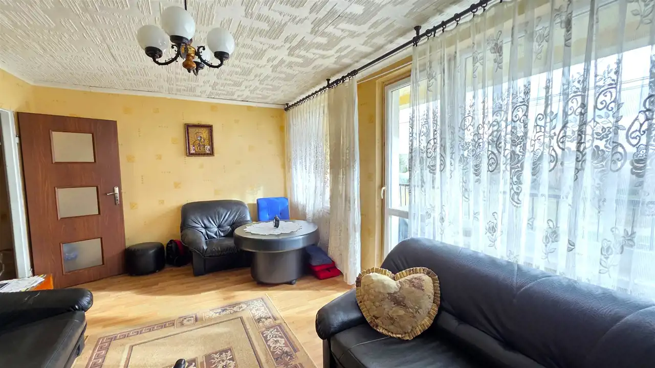 Przestronne mieszkanie o powierzchni użytkowej 74,10m2 z dużym balkonem, garażem i ogródkiem w opcji położone 4,5km od gminnej miejscowości Łęczyce. Lokal usytuowany jest na parterze dwupiętrowego bloku. Nieruchomość nie wymaga natychmiastowych nakładów finansowych, można od razu zamieszkać, a z czasem zaaranżować pod swój gust. Składa się z przedpokoju, widnego pokoju dziennego z wyjściem na w/w balkon, dwóch pokoi, jasnej, oddzielnej kuchni oraz łazienki z WC i prysznicem. Do mieszkania przynależą dwie piwnice (po ok. 20m2) oraz garaż (blaszak). Dodatkowo istnieje możliwość dzierżawy ogródka. Opodal budynku znajdują się miejsca parkingowe oraz przystanki autobusowe, sklepy, szkoła, kościół. Ze względu na cenę, niski czynsz oraz wspomniane atuty oferta jest godna polecenia.