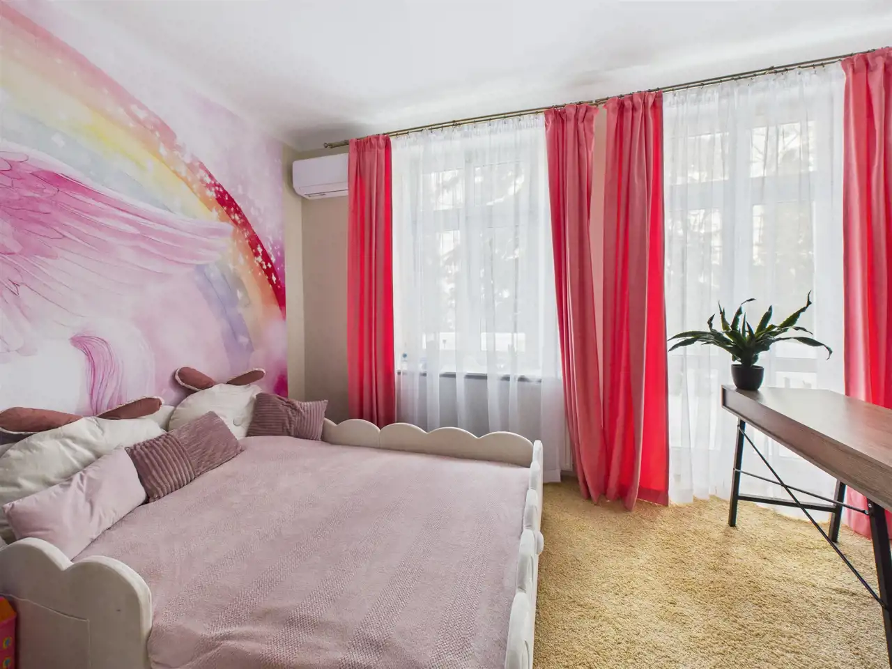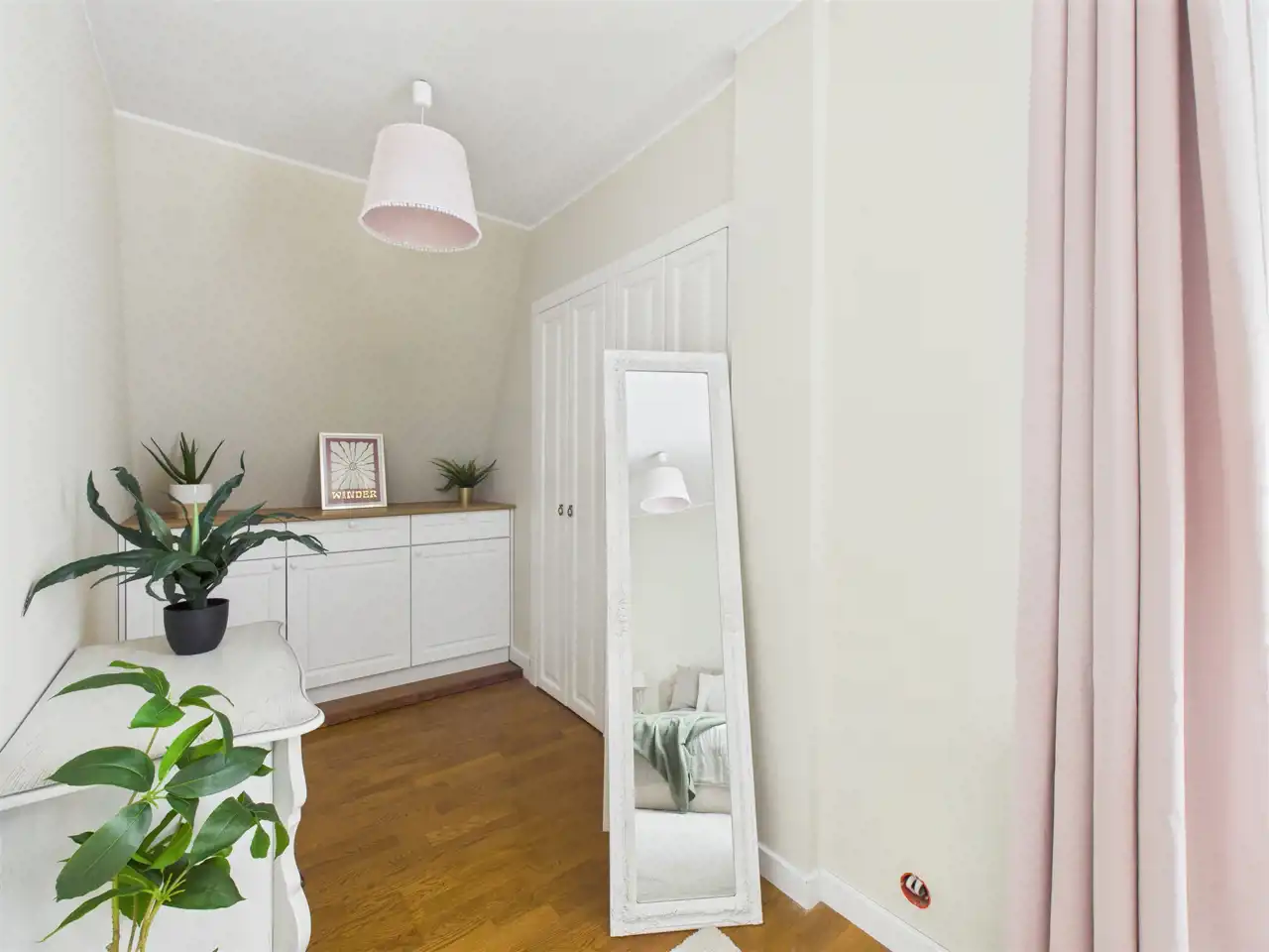 - Duża sypialnia z szafą w zabudowie oraz wyjściem na balkonem;