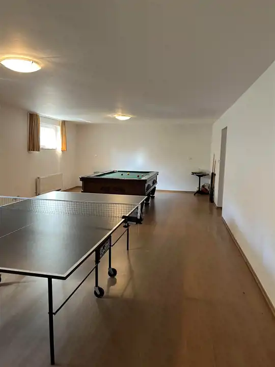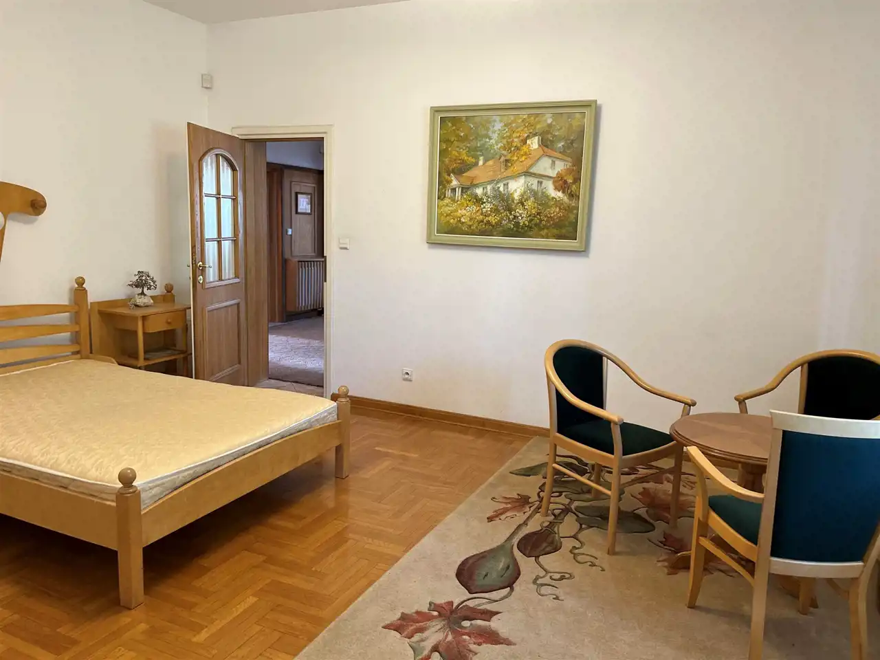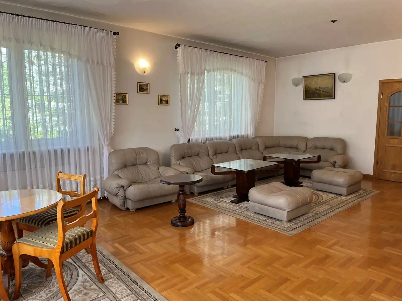 Znajduje się w nim 11 pokoi, w tym 9 sypialni, ma 3 duże łazienki i 1 mniejszą, 3 osobne w.c. oraz saunę.
