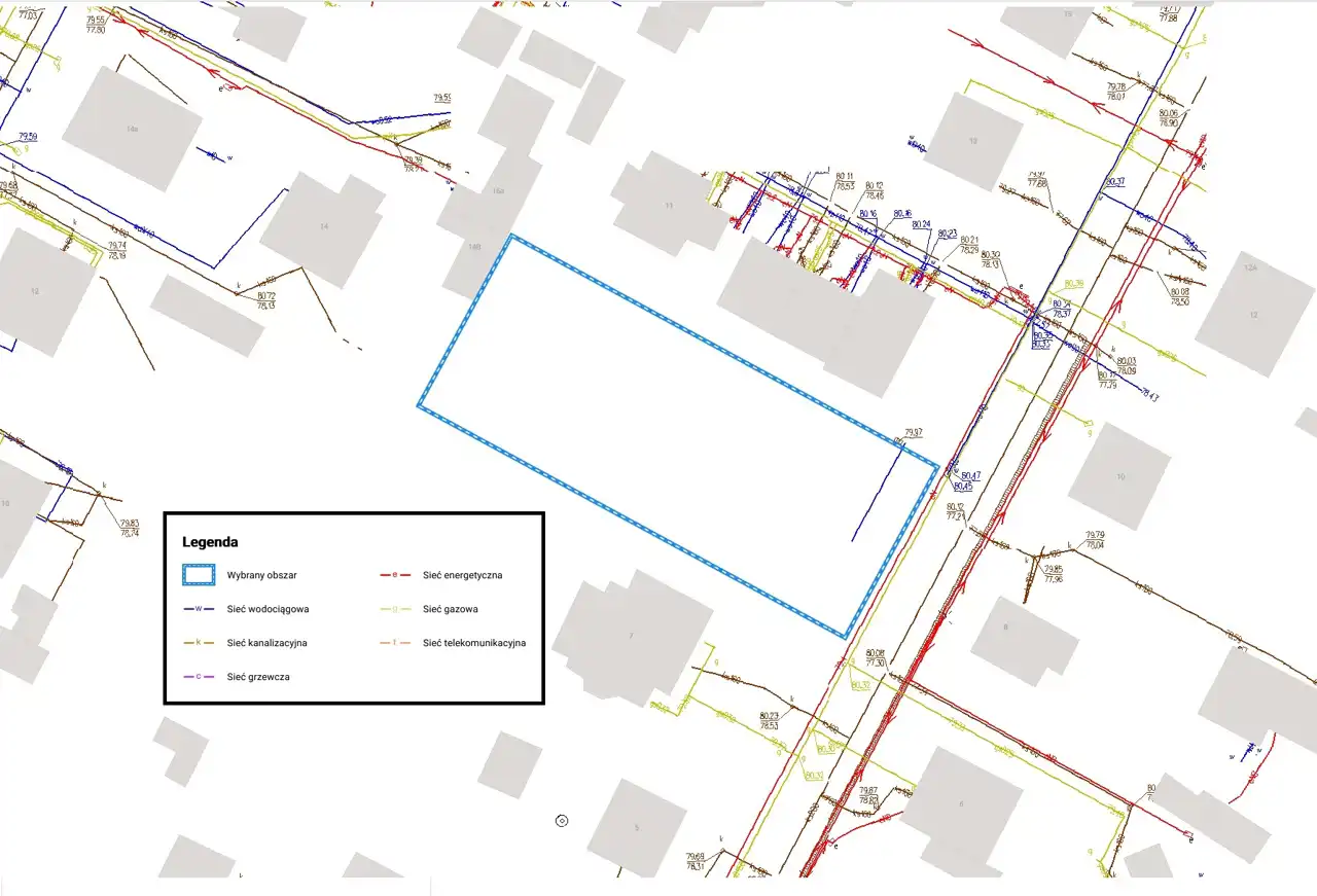 Wszystkie media przy działce (woda, kanalizacja, prąd, gaz, światłowód), dołączona mapka.