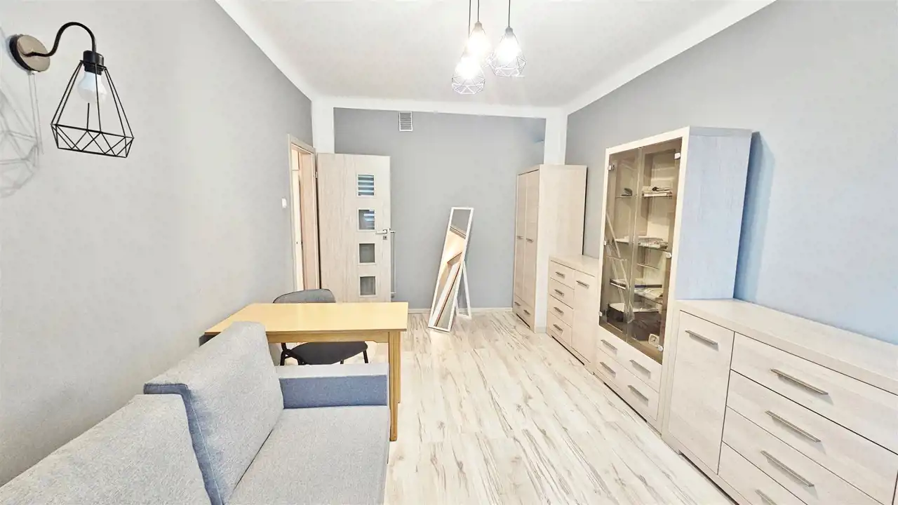 Układ mieszkania z wyodrębnioną częścią do spania i aneksem kuchennym sprawia, że to świetna propozycja zarówno dla singla, seniora i pierwszego mieszkania-komfortowe , jasne i funkcjonalne.