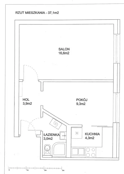 - Charakterystyka mieszkania 37.1 m2, 2 pokoje