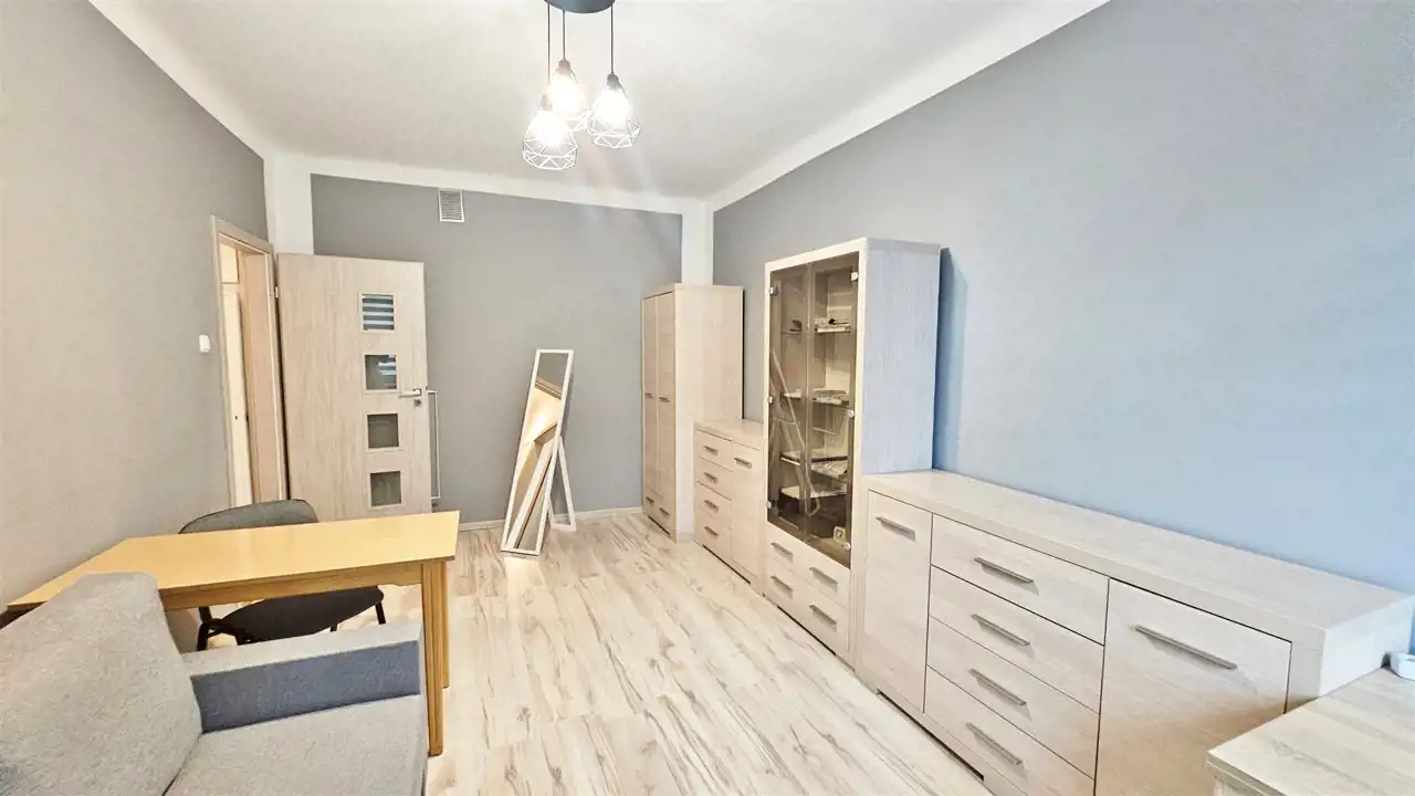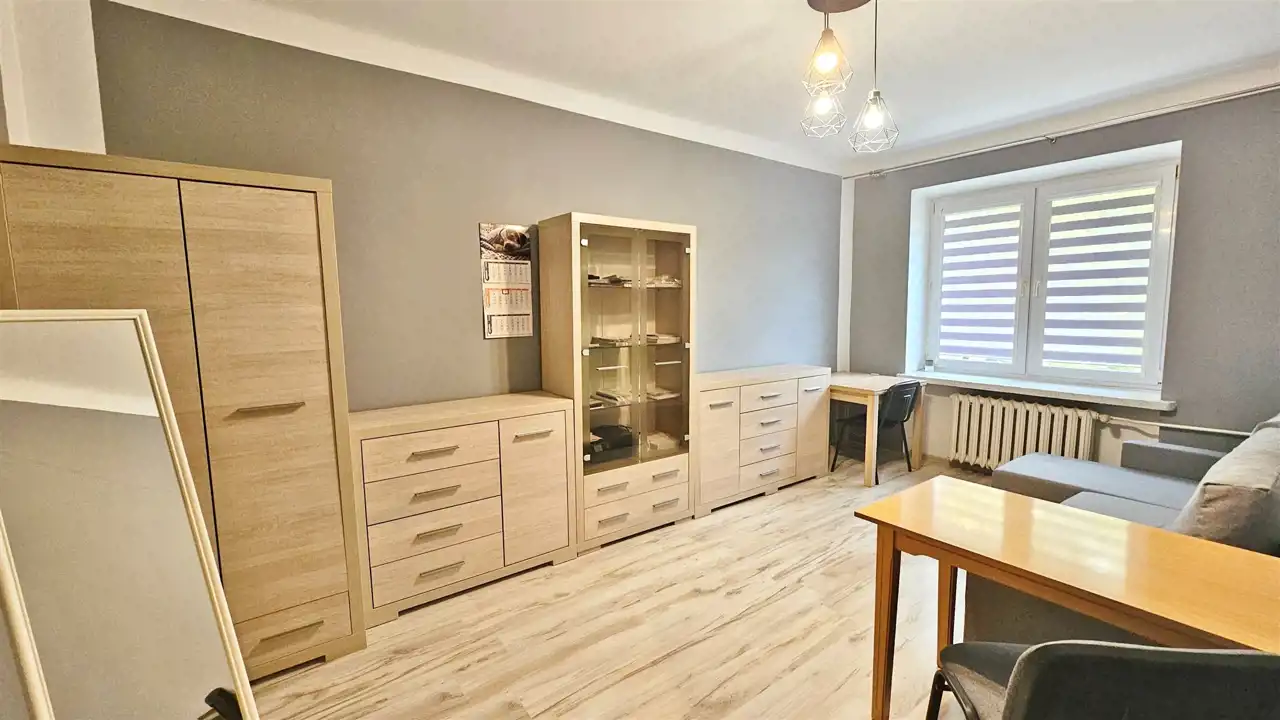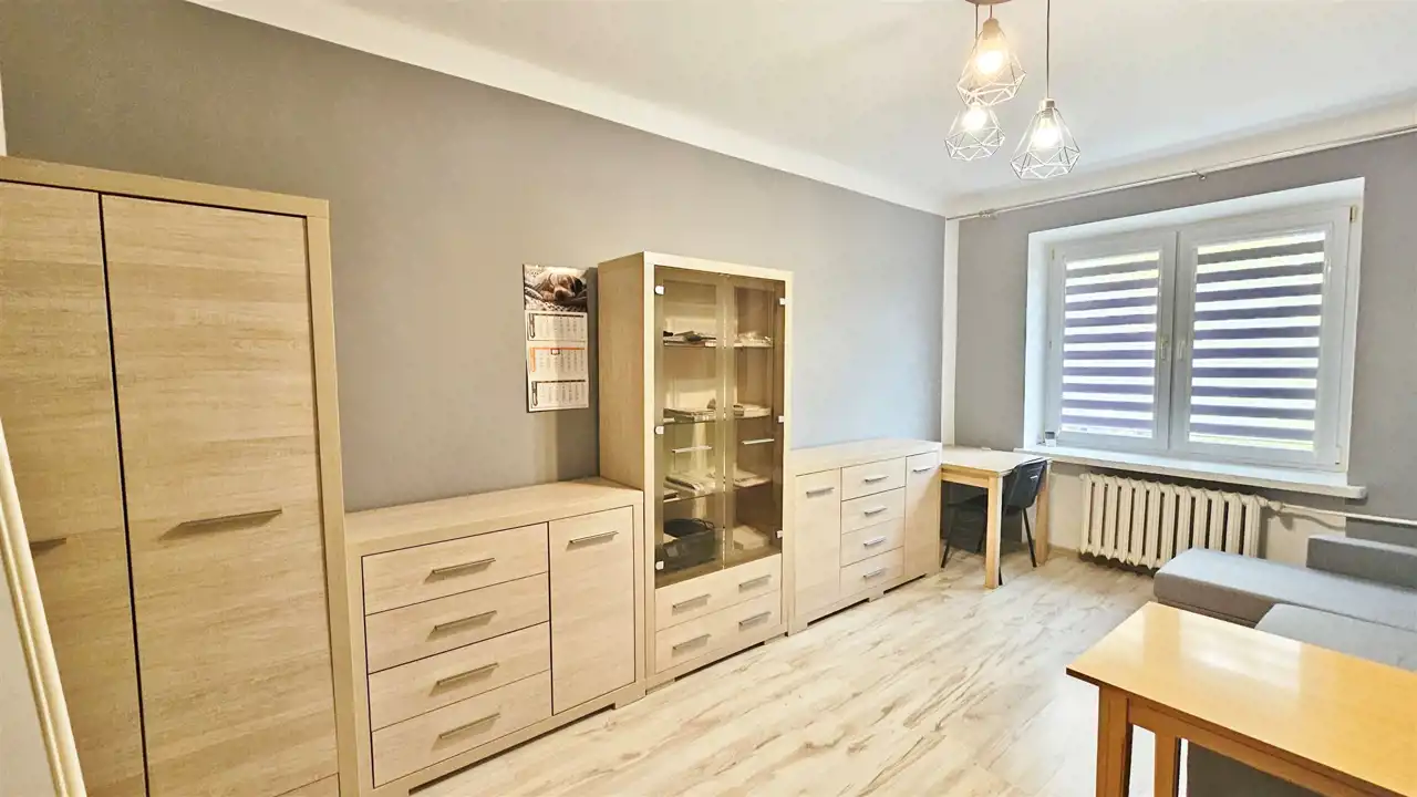 Układ mieszkania z wyodrębnioną częścią do spania i aneksem kuchennym sprawia, że to świetna propozycja zarówno dla singla, seniora i pierwszego mieszkania-komfortowe , jasne i funkcjonalne.