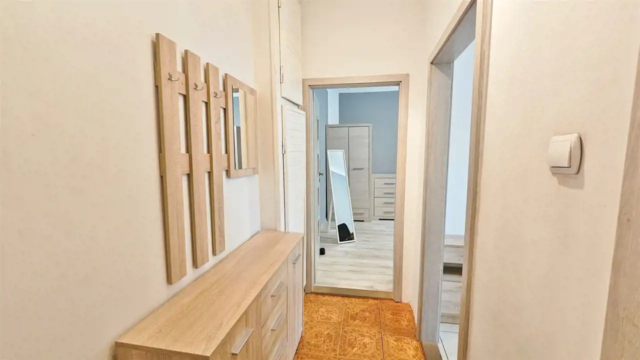 - korytarz 3,9m2 (z praktycznym miejscem do przechowywania rzeczy, dyskretnie wkomponowanym w przestrzeń