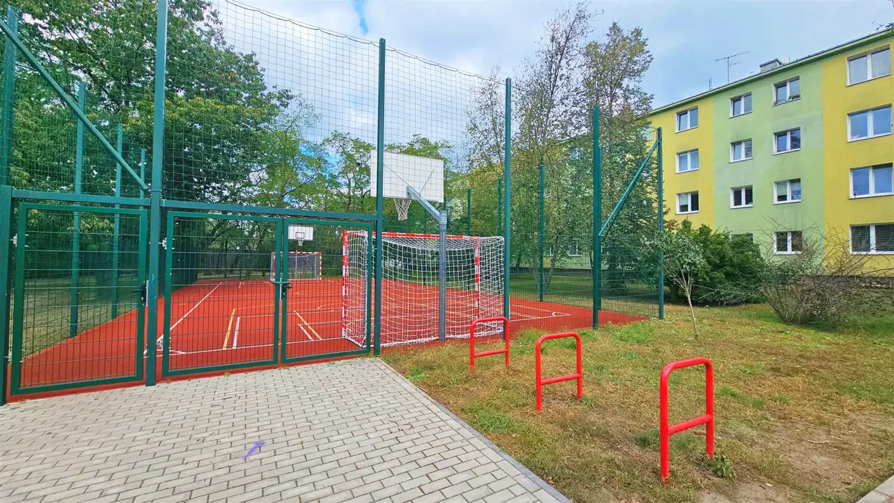 - w sąsiedztwie bloku znajduje się boisko do gry w piłkę,