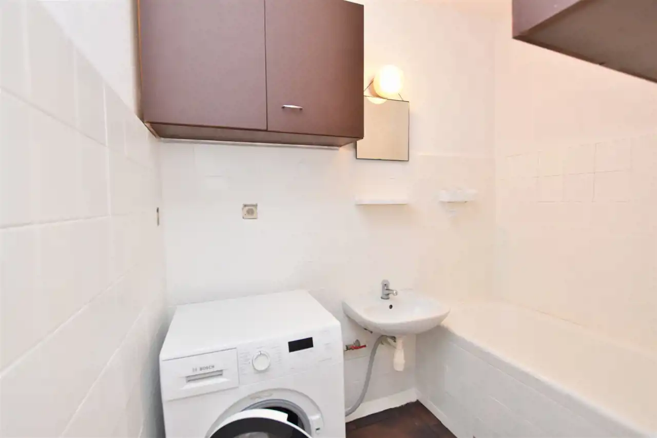 Kuchnia i łazienka wyposażone w sprzęt AGD.