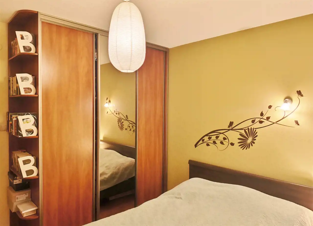 - Sypialnia (10m2) - z pojemną szafą w zabudowie i parkietem.