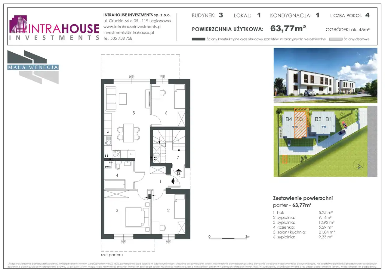 - Charakterystyka mieszkania 63.77 m2, 4 pokoje