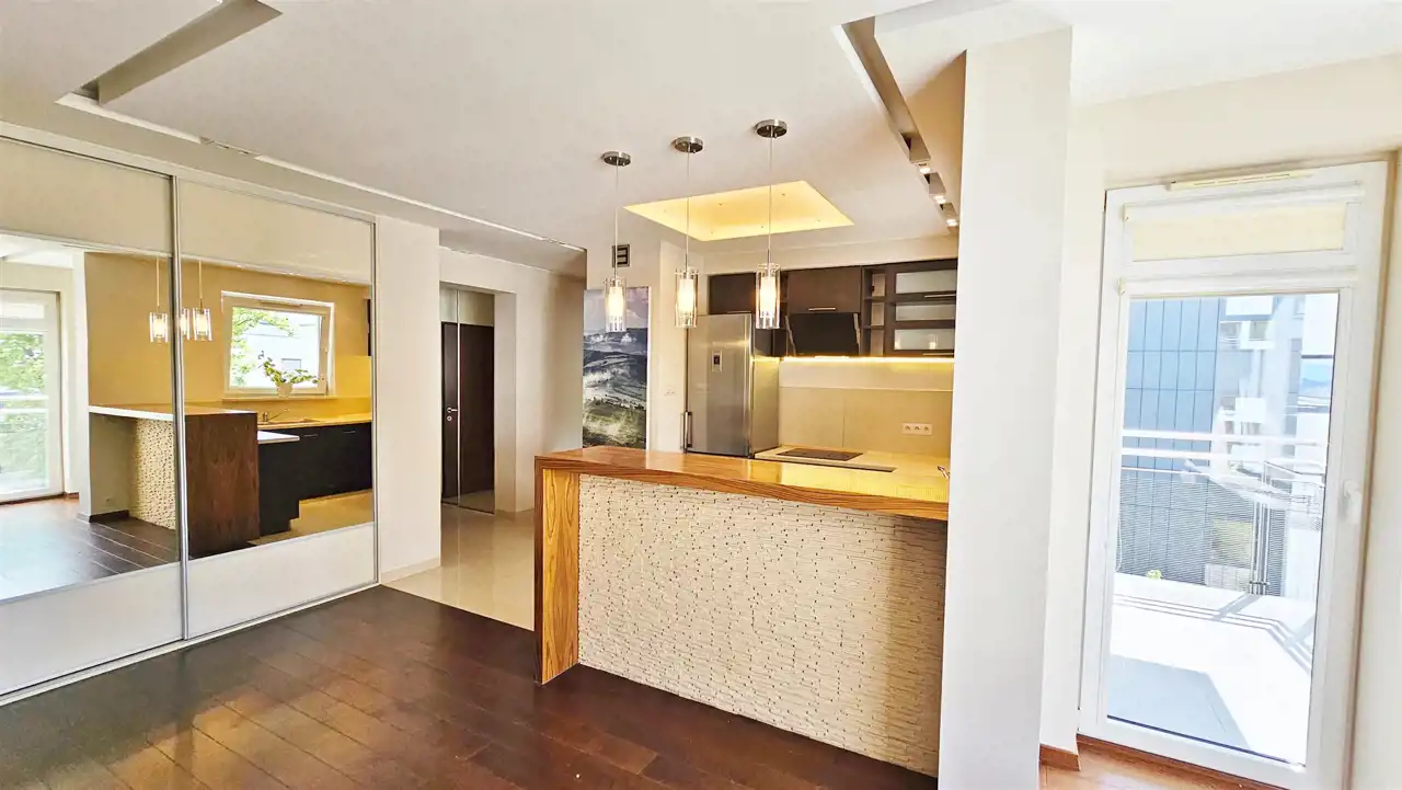 Z salonu wyjście na balkon.
