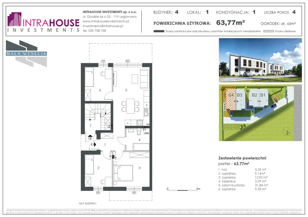- Charakterystyka mieszkania 63.77 m2, 4 pokoje