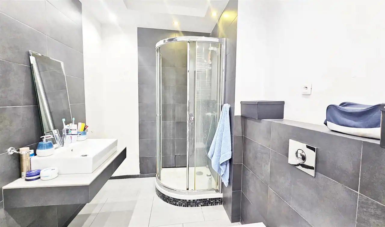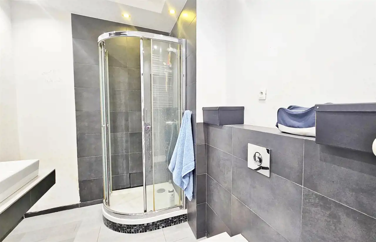 Do mieszkania przynależy także komórka lokatorska, która stanowi dodatkową przestrzeń na przechowywanie.