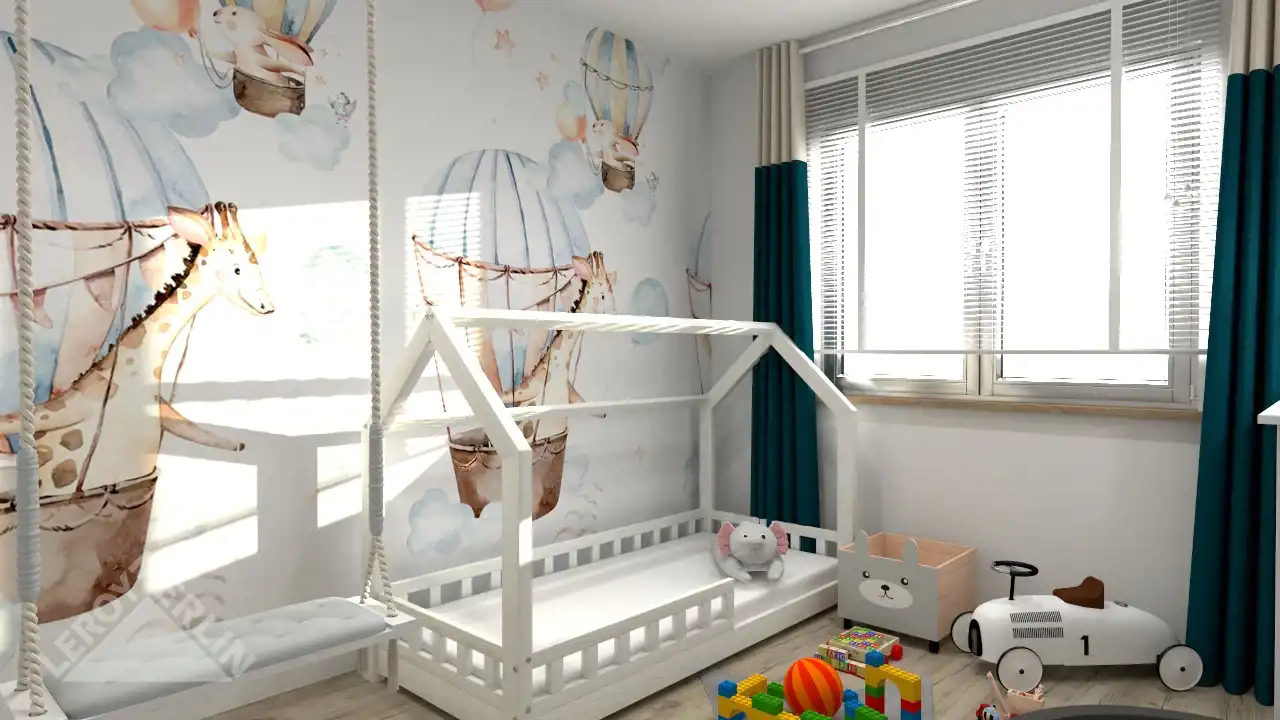 - w części parteru będzie wiatrołap , salon z aneksem kuchennym, trzy pokoje sypialniane, pomieszczenie gospodarcze