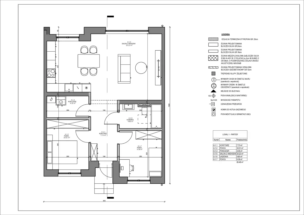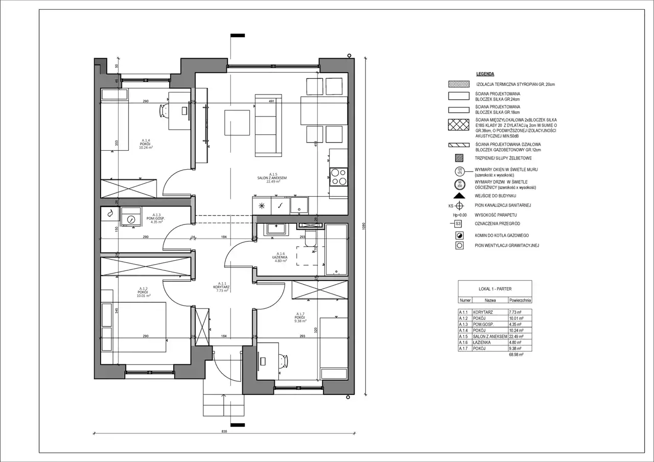 - Charakterystyka mieszkania 68.89 m2, 4 pokoje, do wykończenia