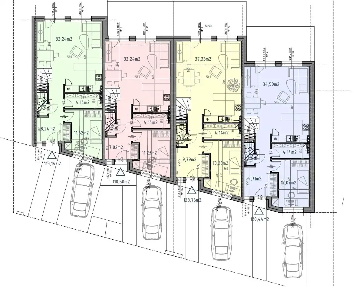 To bardzo wygodne Domy mają optymalną powierzchnię od 110,75 m2 do 127,08 m2. Każdy dom posiada 2 kondygnacje oraz działkę do wyłącznego użytku o powierzchni ok. 250m2. Projekt zapewnia funkcjonalność, pokoje są ustawne, a co ważne na poddaszu nie ma skosów.