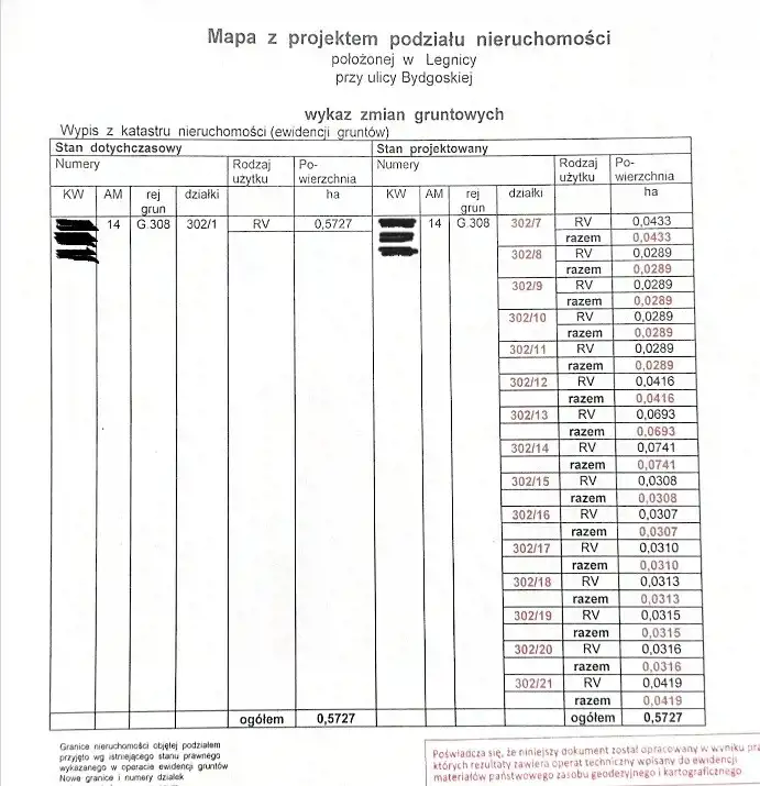 302/7 i 302/8 o łącznej powierzchni 7,22 ar w cenie 300.000 zł netto