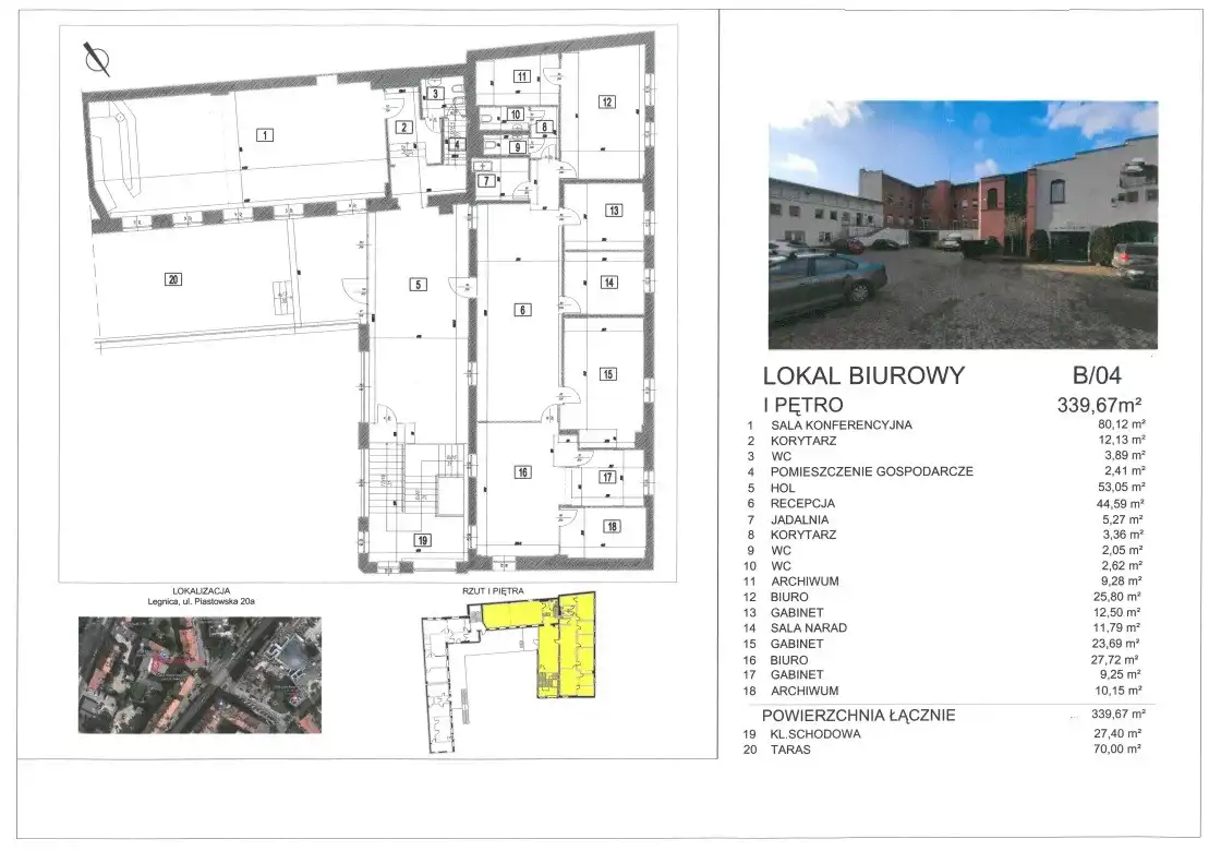 Do wynajęcia lokal usługowo-biurowy w okolicach centrum Legnicy o powierzchni 340 m2. Lokal znajduje się na I piętrze w kompleksie budynków biurowo-usługowych. Lokal został zaprojektowany jako funkcjonalna siedziba firmy z recepcją, salą konferencyjną, biurami oraz zapleczem.