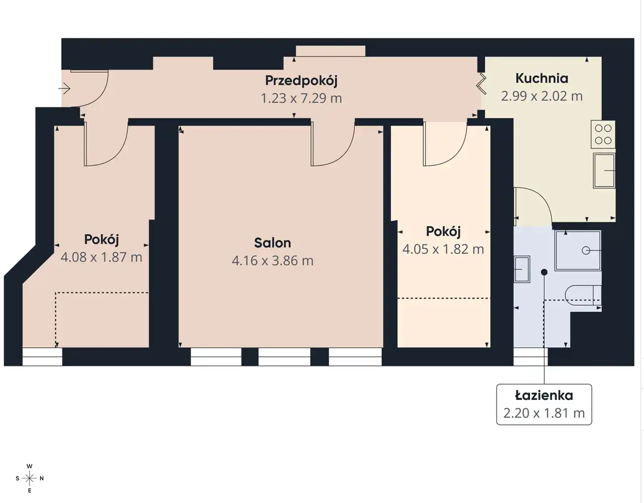 - Charakterystyka mieszkania 45.3 m2, 3 pokoje