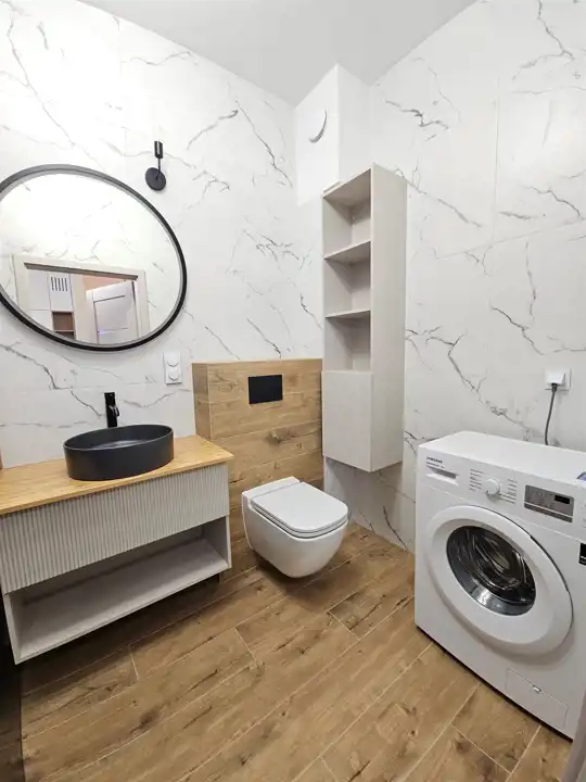 Mieszkanie jest wykończone w nowoczesnym stylu, gotowe do zamieszkania bez dodatkowych nakładów finansowych. Układ pomieszczeń jest funkcjonalny i bardzo wygodny.