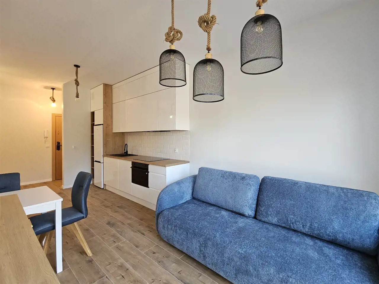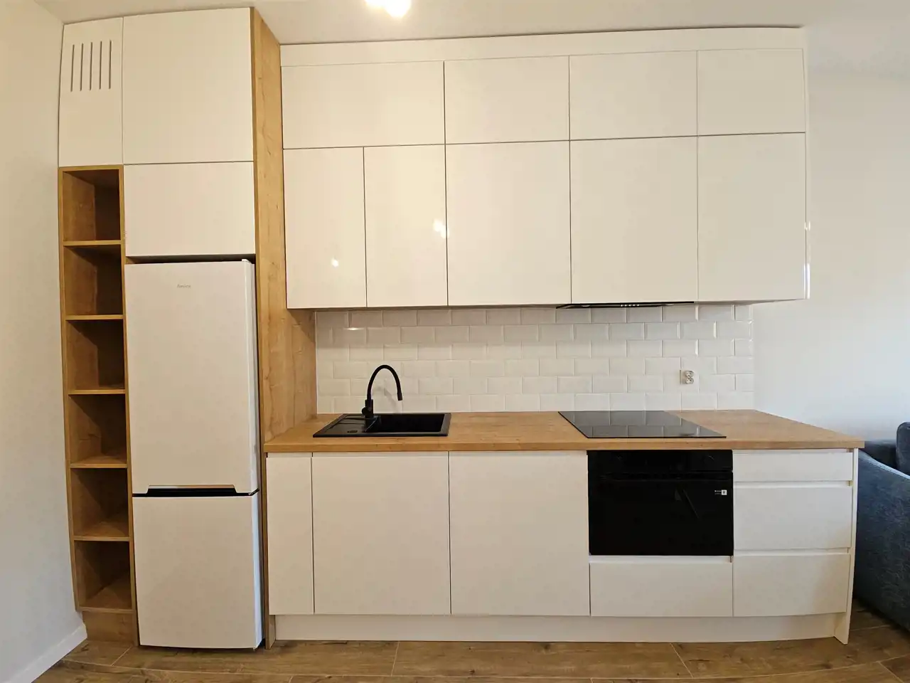 W cenie nowe, pełne umeblowanie: kuchnia z AGD (lodówka, zmywarka 60’, płyta indukcyjna), stół z krzesłami, sofa, w sypialni łóżko, szafa, pełna armatura i zabudowa łazienki.