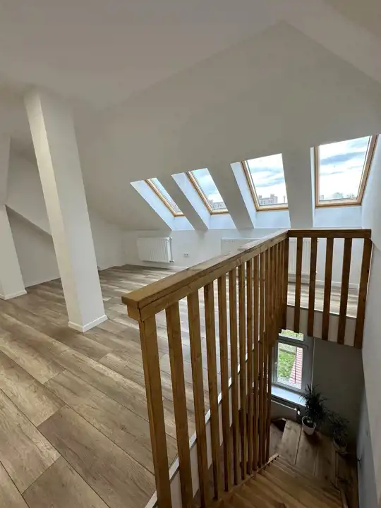 - zachowana oryginalna stolarka drzwiowa oraz sosnowe schody wpływają na ciepły klimat wnętrza;