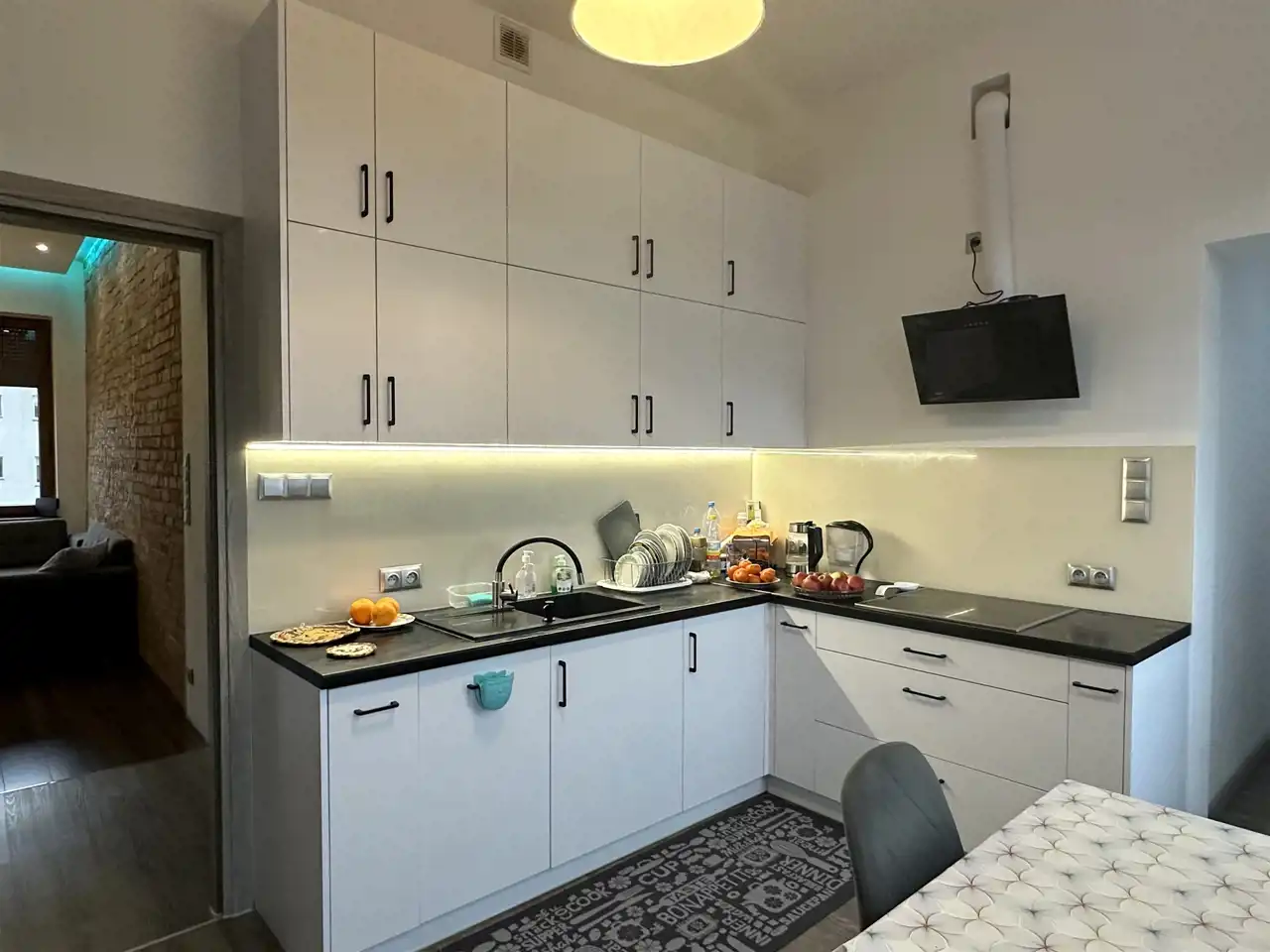- kuchnia w zabudowie meblowej z pełnym sprzętem AGD