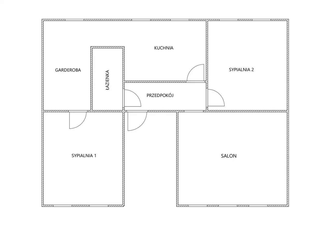 Lokal składa się z salonu, 2 sypialni, kuchni, garderoby oraz przedpokoju.