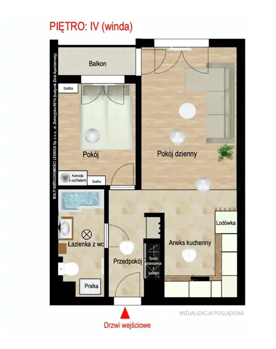 Załączona wizualizacja poglądowa jest przybliżona, nie może być podstawą prac budowlanych.
