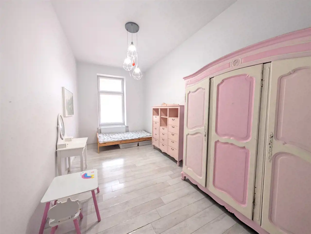 Do wynajęcia przestronne 3-pokojowe mieszkanie o powierzchni ponad 62 m2, znajdujące się na pierwszym piętrze kamienicy położonej w centrum Legnicy. Jest to świetna lokalizacja niedaleko zarówno do rynku jak i legnickiego parku. W najbliższej okolicy znajduje się cała niezbędna infrastruktura: sklepy, urzędy, szkoły, przedszkola, poczta, piekarnia, przystanki autobusowe. Lokal jest umeblowany i wyposażony. W kuchni znajduje się lodówka, kuchenka, piekarnik i suszarka bębnowa oraz szafki do przechowywania. Łazienka razem z WC i kabiną prysznicową, wyposażona w pralkę. W pokojach znajdują się łóżka i szafy.