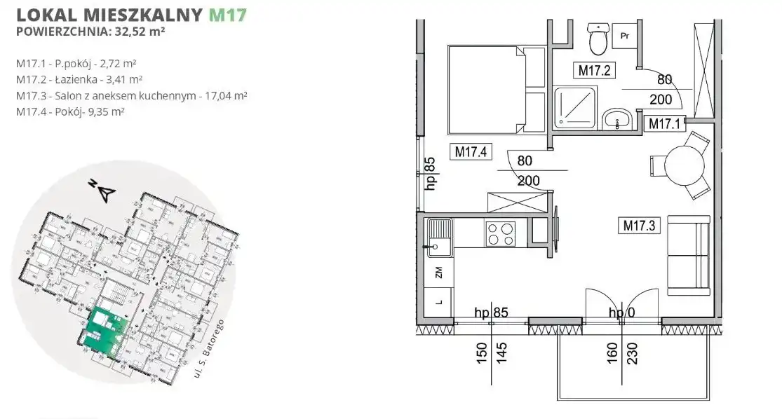 - Charakterystyka mieszkania 32.52 m2, 2 pokoje