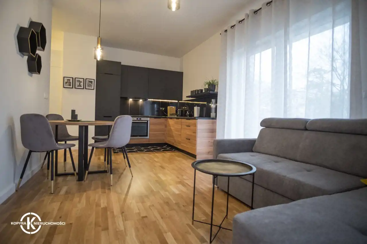 Polecamy do wynajęcia od zaraz komfortowy oraz wyposażony 2-pokojowy apartament o pow. 41,20 m2, z miejscem postojowym , usytuowany na 1- piętrze w apartamentowcu z 2021 roku - ul. Fredry - Apartamenty Batorego.