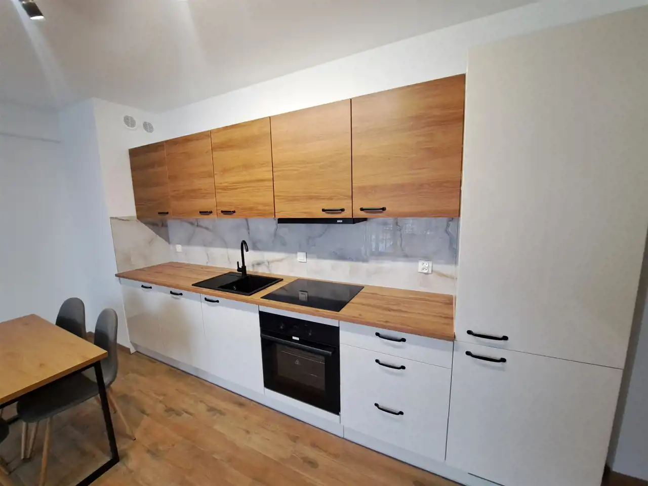 - przestronny salon z aneksem kuchennym i wyjściem na balkon