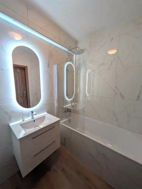 Położony na II piętrze w budynku z windą lokal jest świeżo wykończony, umeblowany i wyposażony — wszystkie meble oraz sprzęty są nowe i nieużywane.