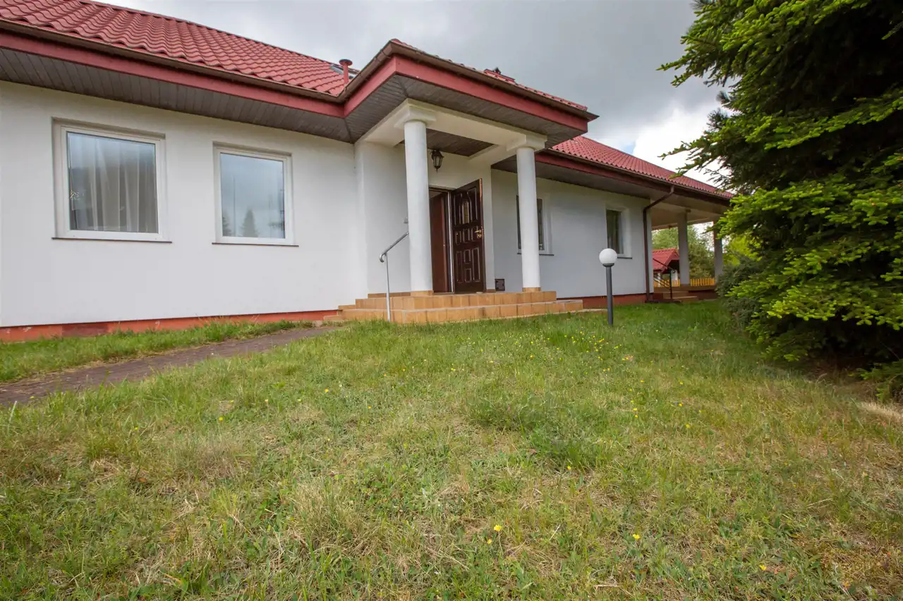 Dom wolnostojący , całoroczny , z garażem na 2 samochody , na działce o powierzchni ok 3700 mkw(działka z dużym potencjałem z powodzeniem można postawić drugi dom) , staw (naturalny) , w gminie Leoncin , miejscowość Nowe Grochale ( odległość od Warszawy około 35 km ) zlokalizowany w otulinie Kampinoskiego Parku Narodowego (w pobliżu Rezerwat Wikliny Wiślane , Obszar Ochrony Ścisłej Rybitew , szlaki piesze i rowerowe , łowiska wędkarskie/ sandacz, sum /).