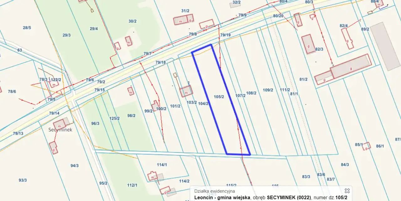 - Media Woda: brak; Kanalizacja: brak; Prąd: w ulicy; Gaz: brak