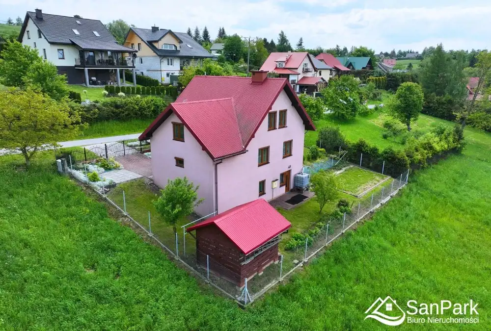 Wybudowany w 2014 roku budynek jest w świetnej kondycji technicznej – ocieplony, z oknami PCV, a w jego bryle umieszczono praktyczny garaż z segmentową bramą. Całość została zaprojektowana tak, aby dom był funkcjonalny, a jednocześnie przytulny i gotowy do zamieszkania bez jakichkolwiek inwestycji.