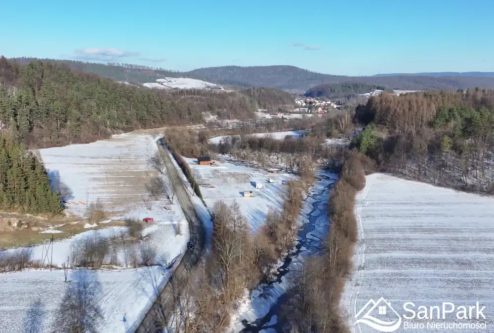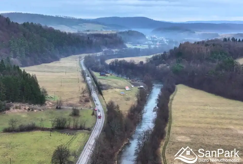 Nieruchomość usytuowana jest w spokojnej, zielonej okolicy, w bezpośrednim otoczeniu natury. Lokalizacja zapewnia ciszę, prywatność oraz doskonałe warunki do wypoczynku i rekreacji, z dala od miejskiego zgiełku. Działka znajduje się przy drodze relacji Lesko – Baligród, co gwarantuje dogodny dojazd. Teren działki jest płaski.