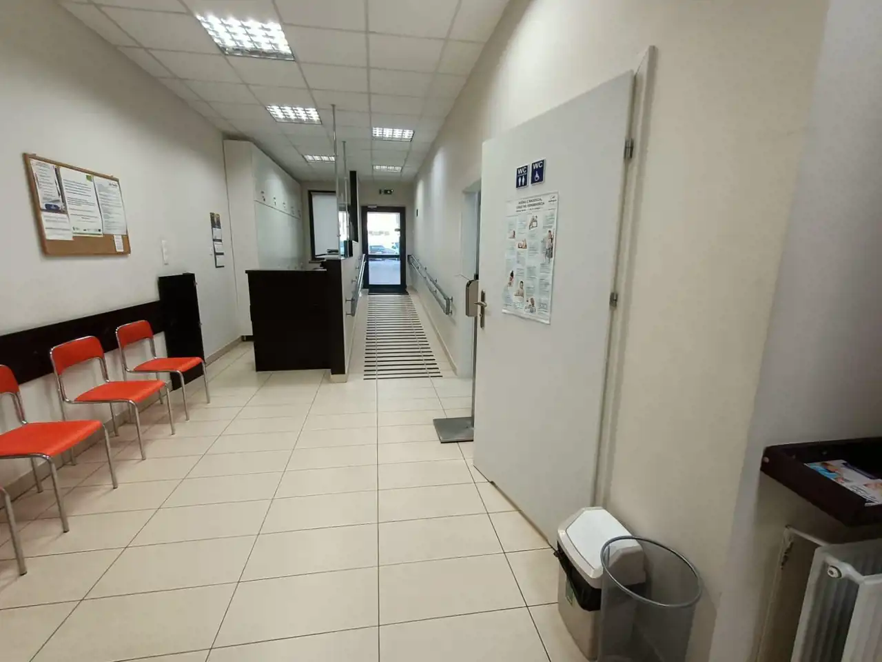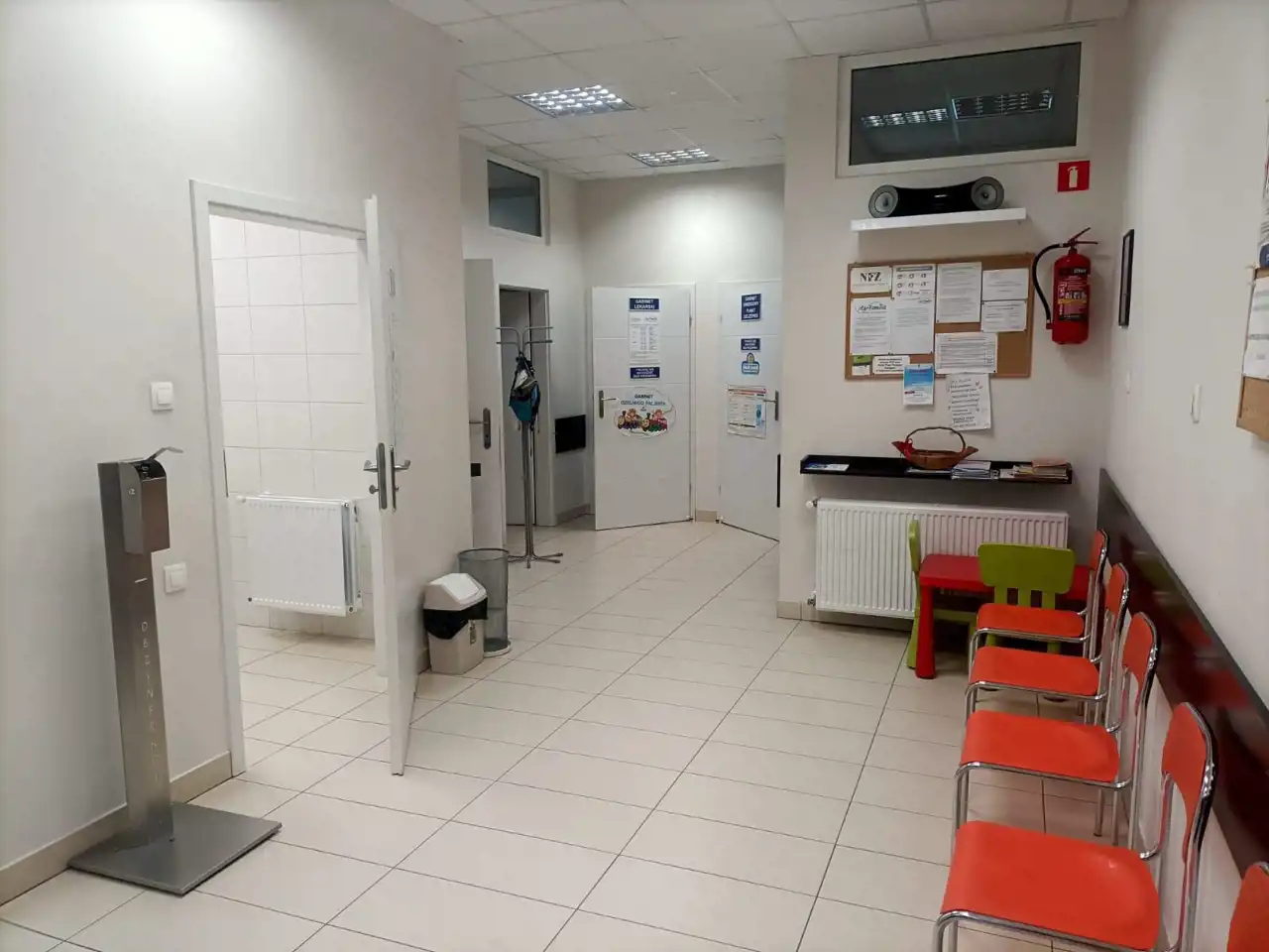 Lokal przystosowany na przychodnię lekarską z układem pomieszczeń: 2 gabinetów lekarskich, 2 łazienek, 2 pomieszczeń socjalnych, pomieszczenia przystosowanego na archiwum oraz poczekalnię i recepcję z archiwum.