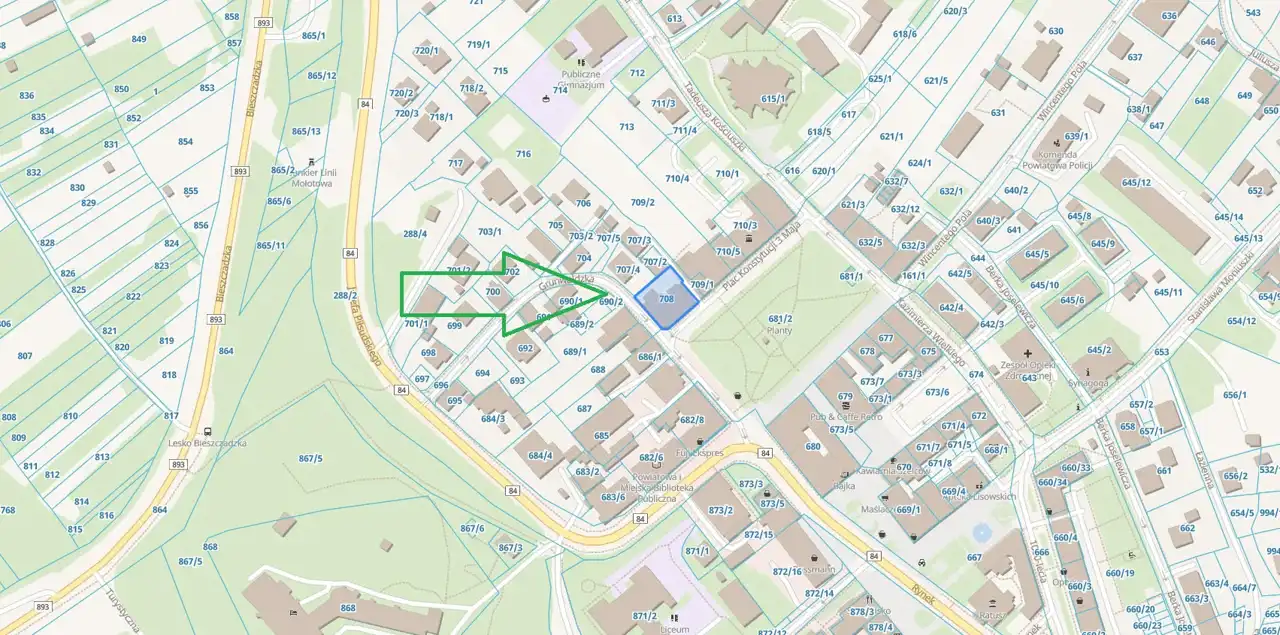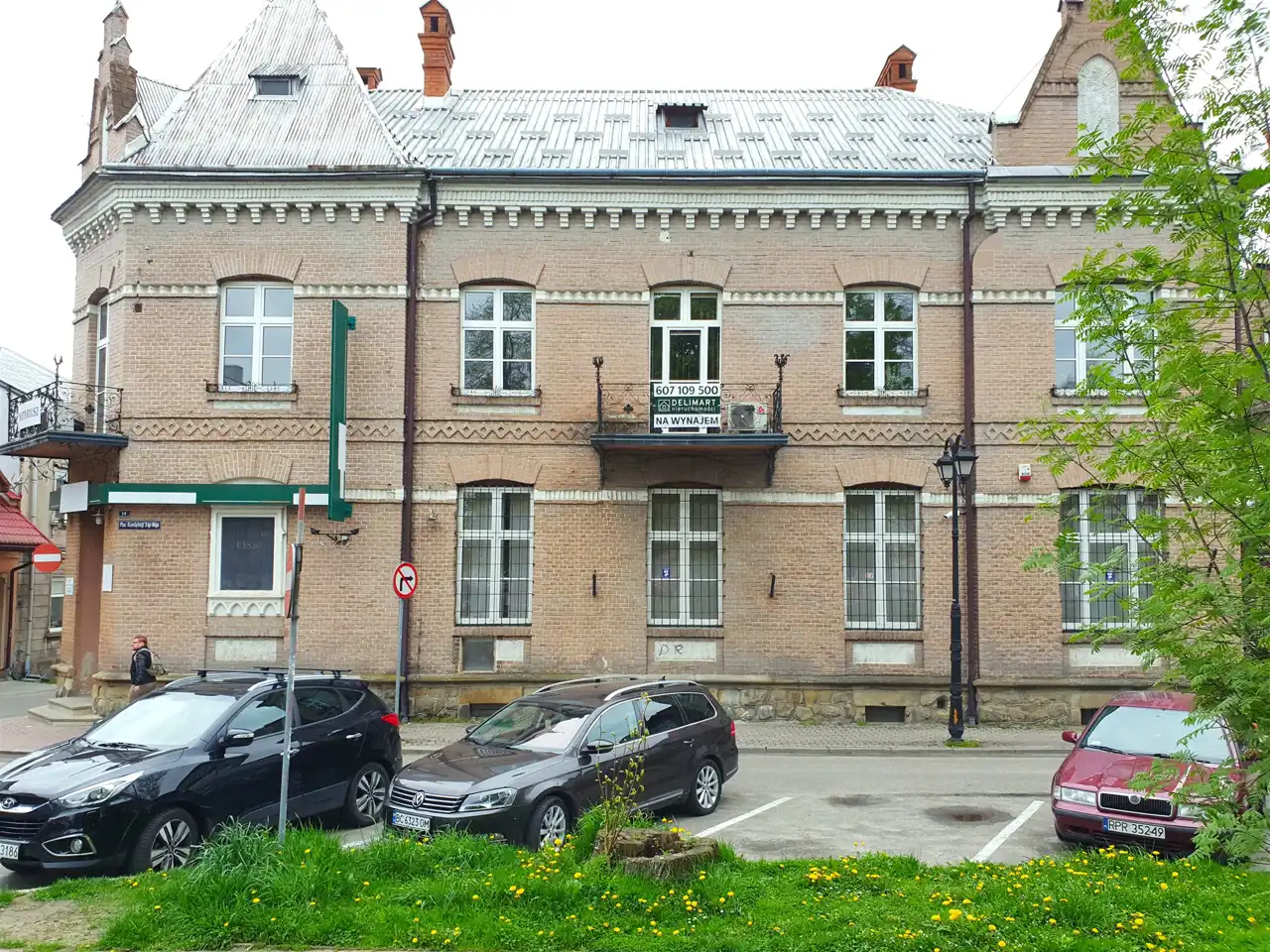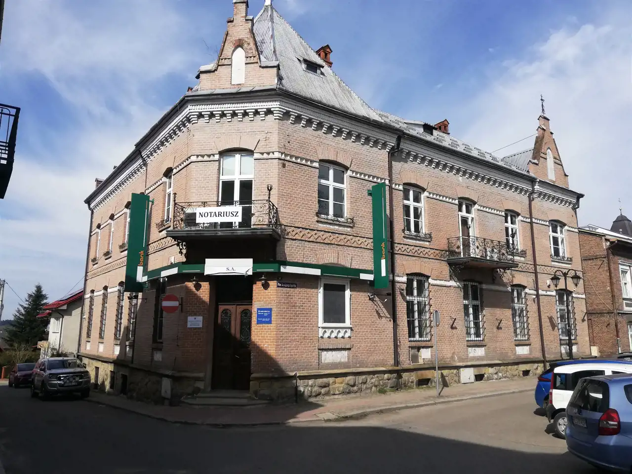 Budynek zlokalizowany w centrum miasta powiatowego Lesko, przy Placu Konstytucji 3 Maja. Lokal znajduje się w historycznym budynku o bardzo atrakcyjnej architekturze. W kamienicy tej znajdowało się Towarzystwo Zaliczkowe w Lesku, później Bank PBS, później Bank Nowy. Do niedawna licznie odwiedzany przez klientów instytucji finansowych. W budynku na I piętrze w jednym z lokali mieści się Kancelaria Notarialna.
