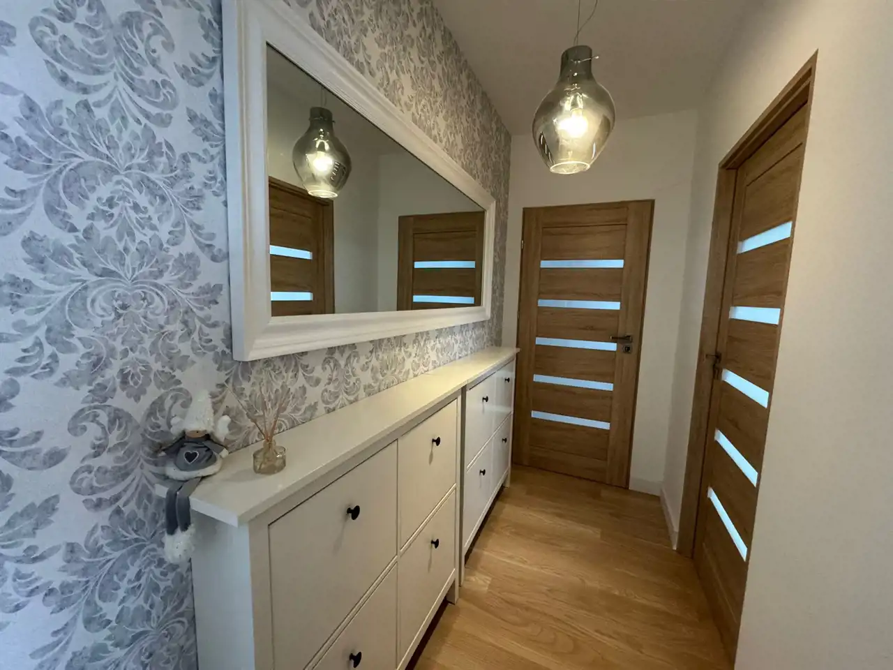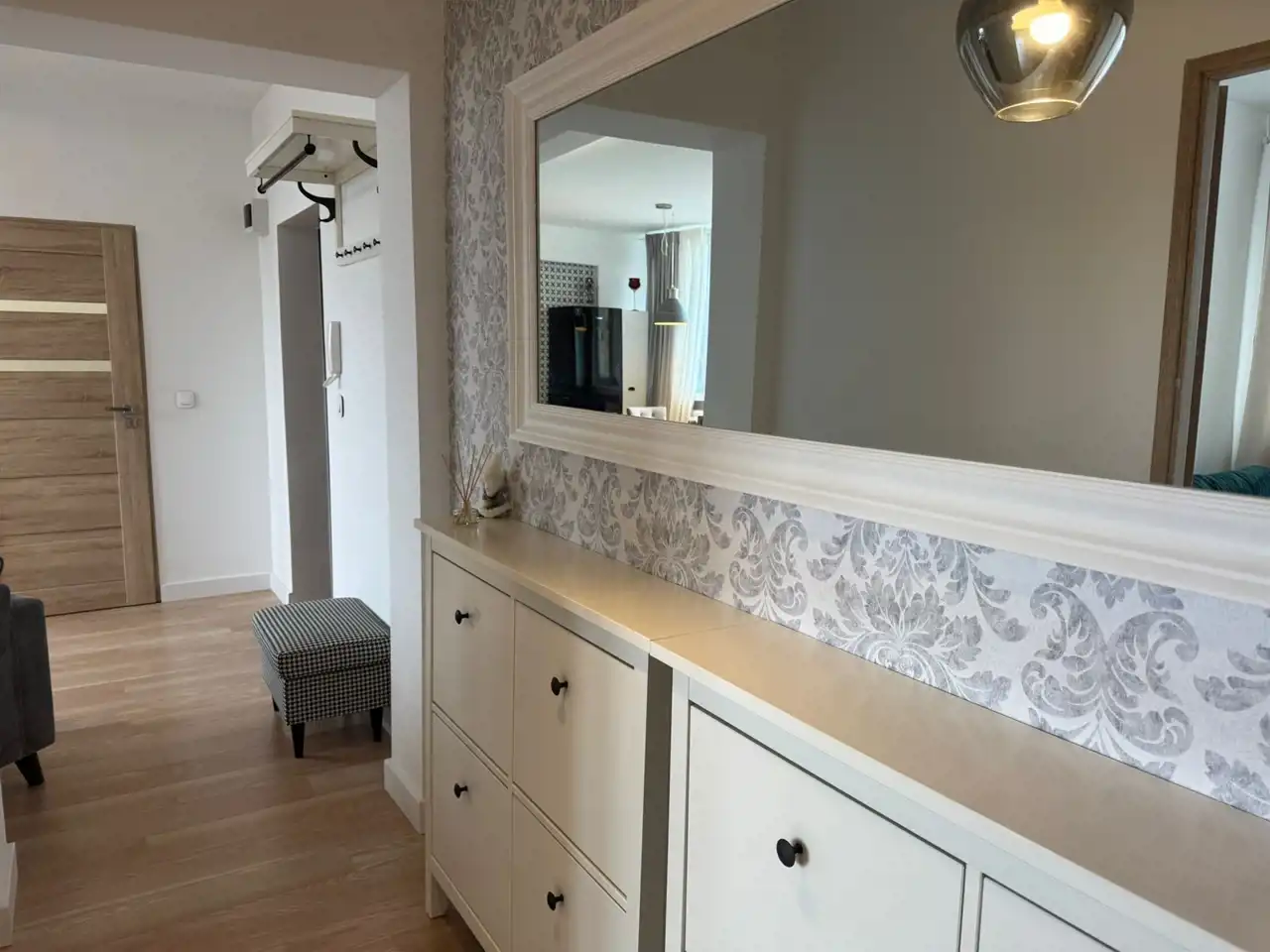 - Korytarz: wieszak na ubrania, szafka na buty, lustro;