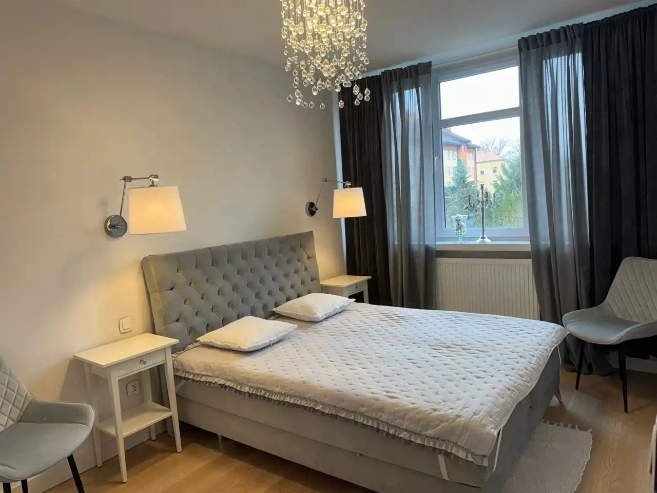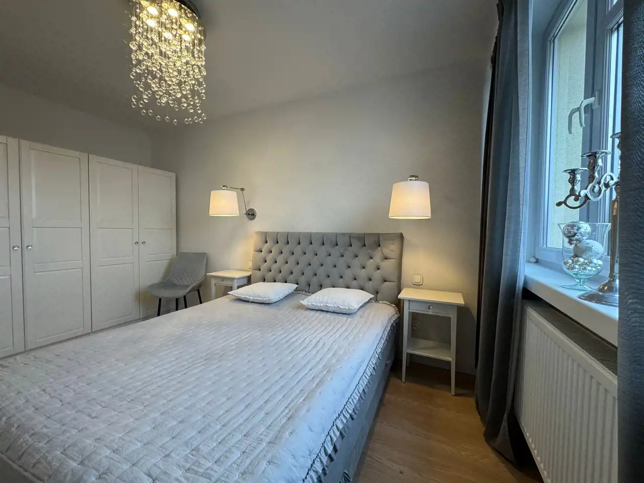 - Sypialnia: Szafa, duże łóżko, szafki nocne;