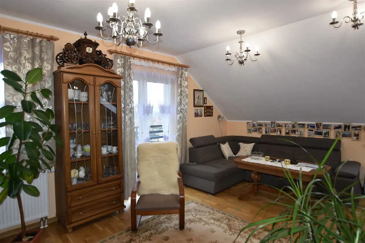 Mieszkanie zadbane, jasne w stonowanych kolorach. W salonie i aneksie kuchennym na podłodze położona została deska barlinecka, na poddaszu panele, w łazienkach terakota.
