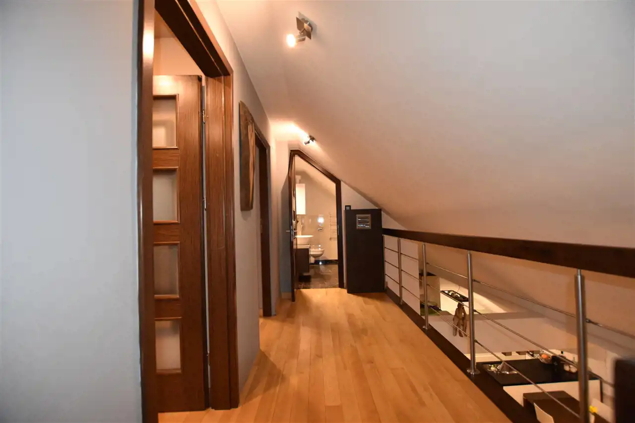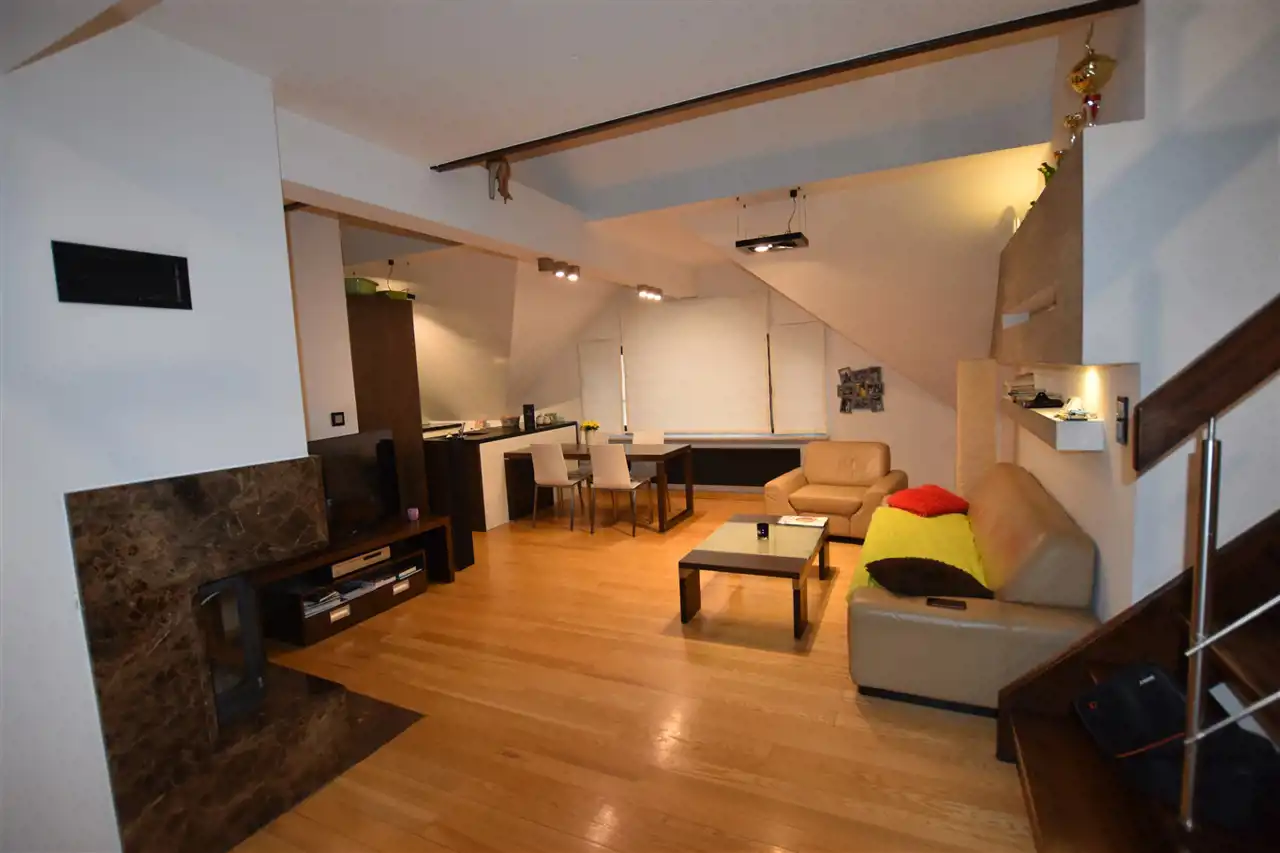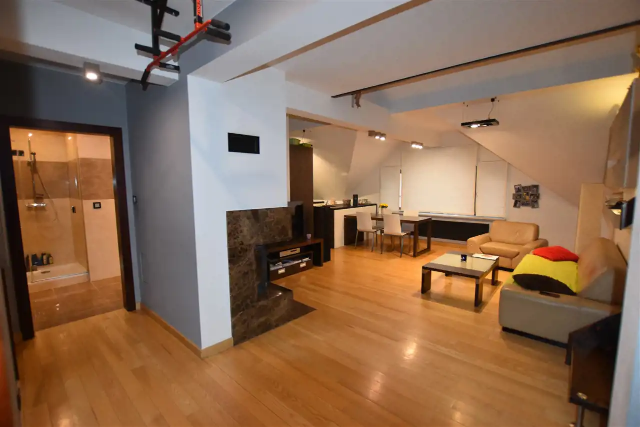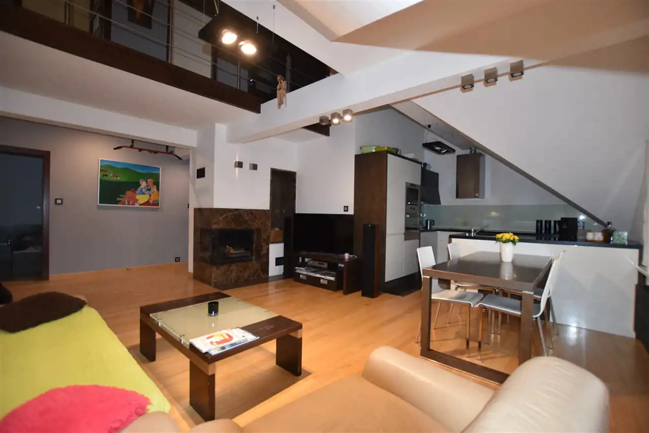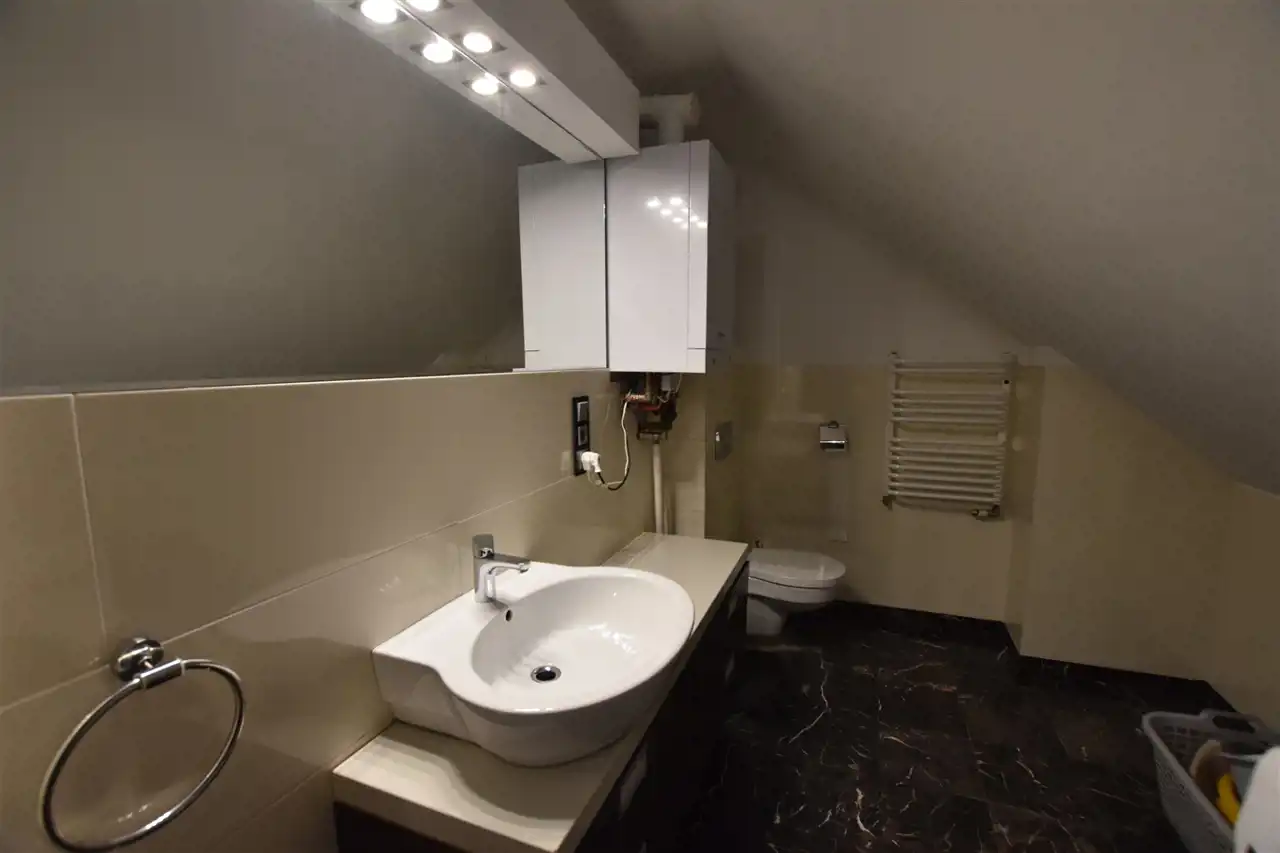 Dwupoziomowe mieszkanie w centrum miasta Leska, w wysokim standardzie wykończenia. W cenę ofertową zostało wliczone wyposażenie mieszkania. Lokal znajduje się na II piętrze w kamienicy, w skład mieszkania wchodzą 4 przestronne sypialnie, duży otwarty salon z aneksem kuchennym i jadalnią. W salonie znajduje się narożny, nowoczesny kominek. Na obydwu poziomach znajdują się łazienki (w łazience na parterze zainstalowano wanna z jacuzzi oraz prysznic). Meble kuchenne zostały wykonane z bardzo wysokiej jakości materiałów, cały sprzęt AGD znajduje się w zabudowie: lodówka z zamrażarką, zmywarka, piekarnik, mikrofala. Podłoga wykończona w drewnie, płytki w kuchni oraz łazienkach. Czynsz ok. 160zł/miesięcznie.