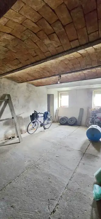 -przejście do części do adaptacji z pięknymi, oryginalnymi poniemieckimi łukami – idealna przestrzeń pod restaurację, winiarnię lub strefę wellness z osobnym wyjściem na ogród.