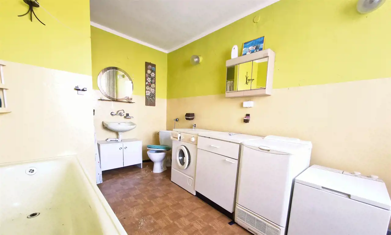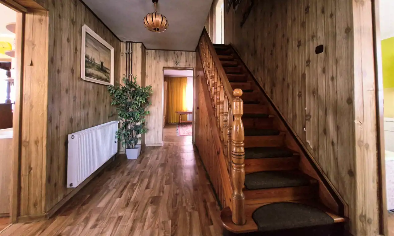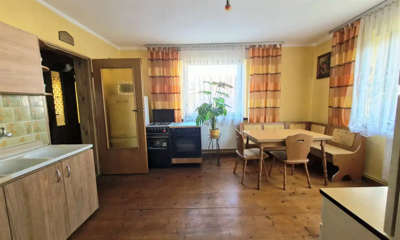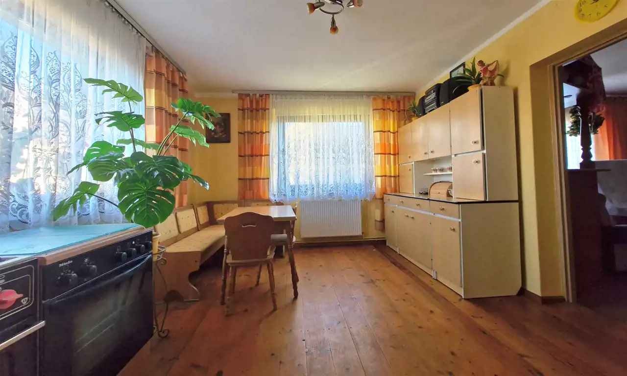 Dach pokryty blachodachówką. Ogrzewanie zapewnia piec węglowy (nowszego typu) oraz kominek, co pozwala na ekonomiczne użytkowanie. W sąsiedztwie budynku mieszkalnego znajdują się także zabudowania gospodarcze oraz garaż, dające dodatkowe możliwości zagospodarowania przestrzeni.