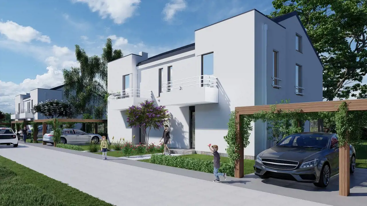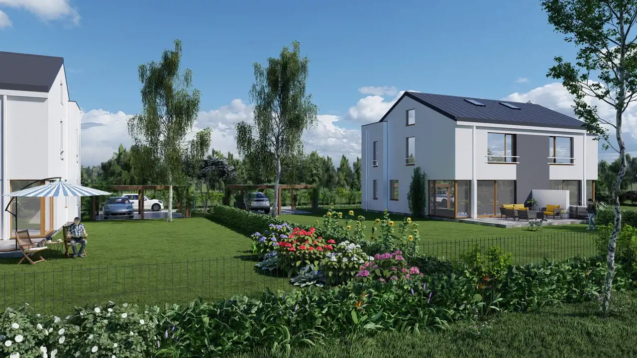 Prezentujemy planowaną ofertę nowoczesnych lokali mieszkalnych w zabudowie jednorodzinnej dwulokalowej (bliźniak) w gminie Leszno, w spokojnej i zielonej okolicy.