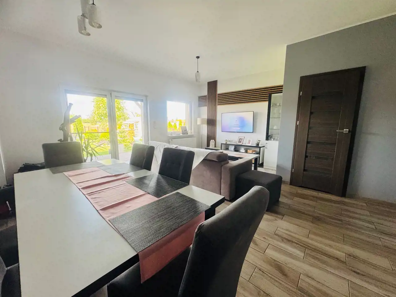 Przestronny salon z wydzieloną strefą wypoczynkową i jadalną– idealne miejsce do wspólnych chwil.