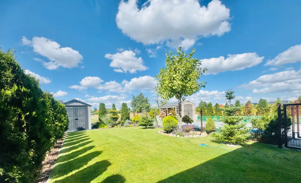 Pięknie zagospodarowana działka o powierzchni 154 m2 posiada liczne nasadzenia – idealne miejsce do wypoczynku i rekreacji.