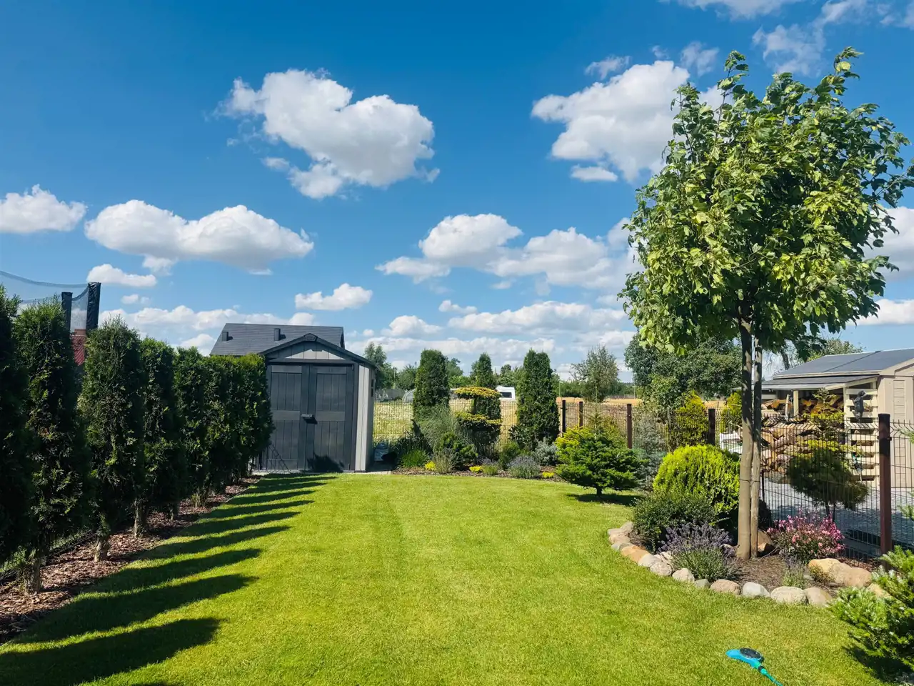 Na terenie posesji znajduje się praktyczny domek ogrodnika – dodatkowa przestrzeń do przechowywania narzędzi i sprzętu.