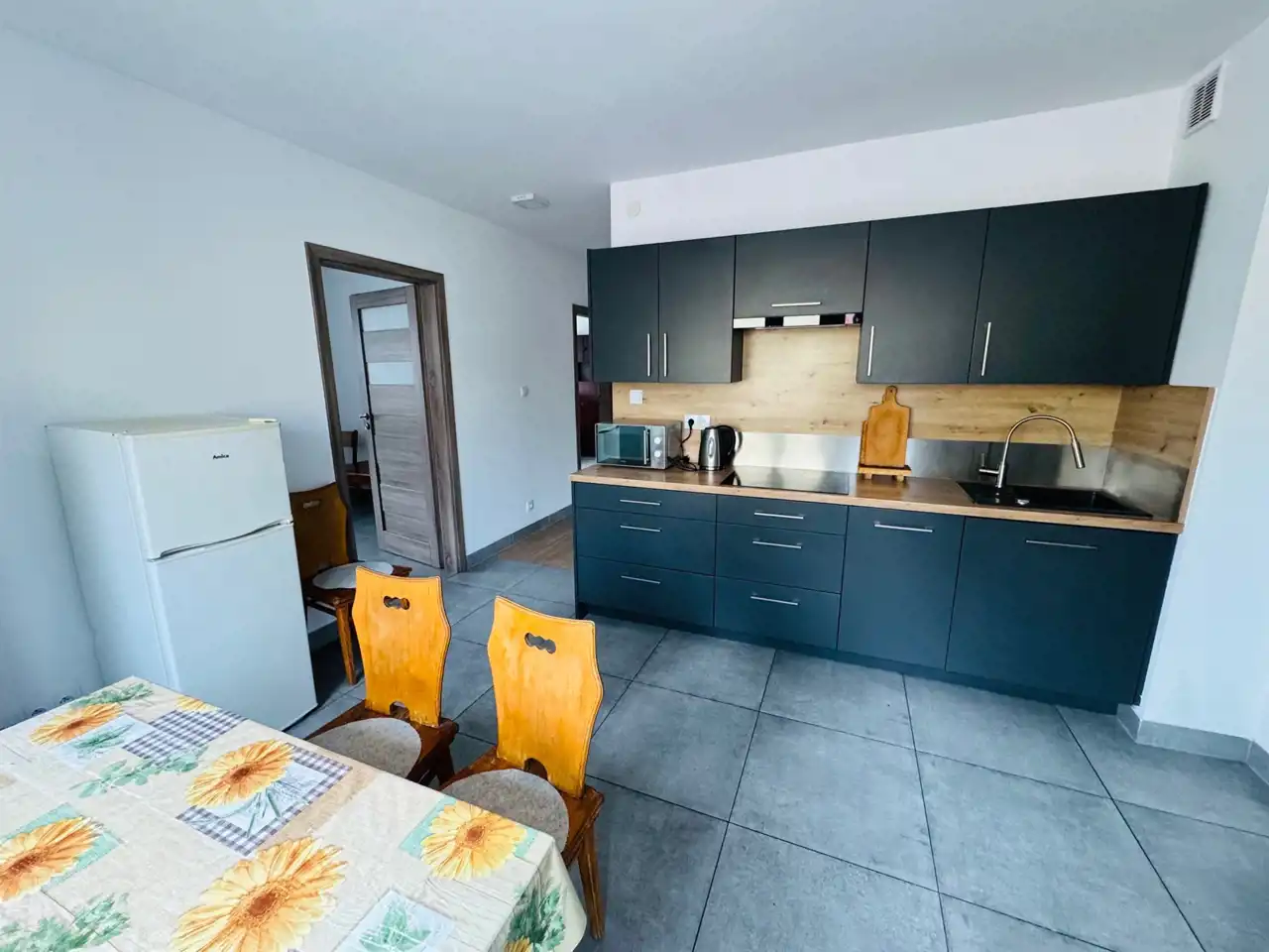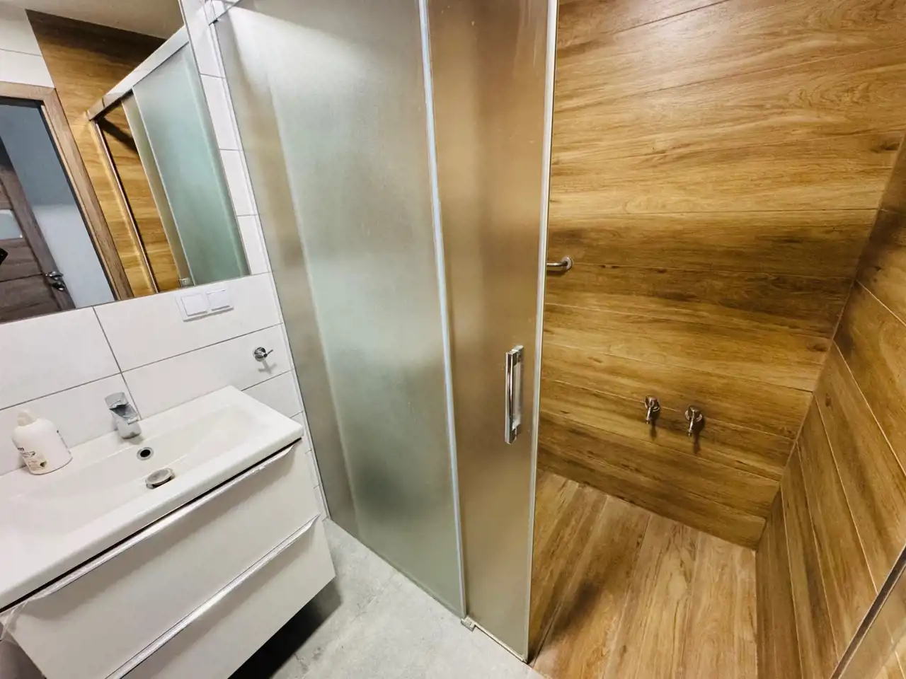Wiatrołap, hall, 2 pokoje, kuchnia, łazienka z prysznicem, kotłownia